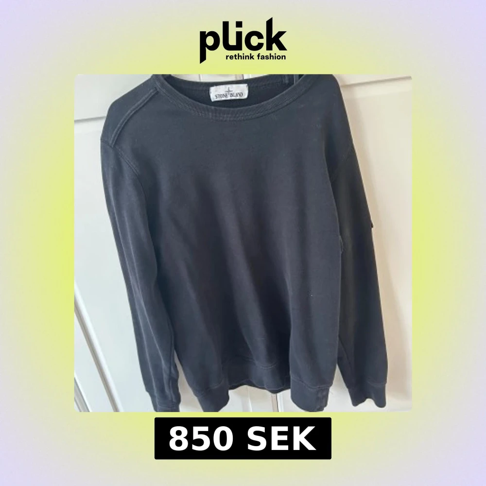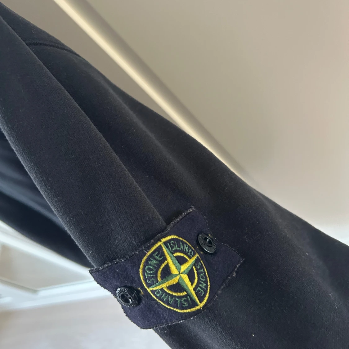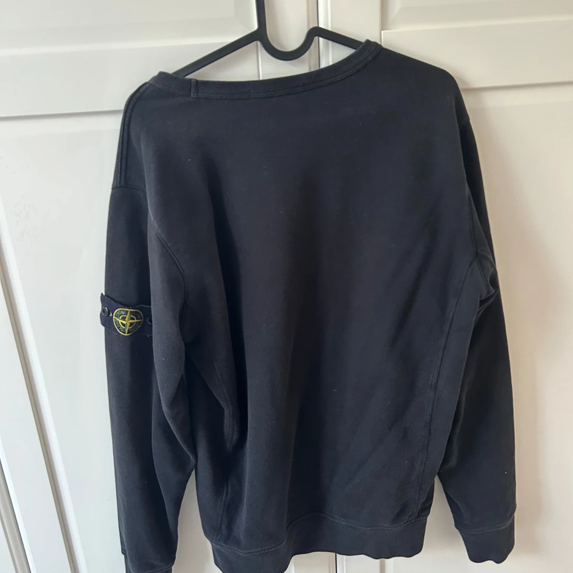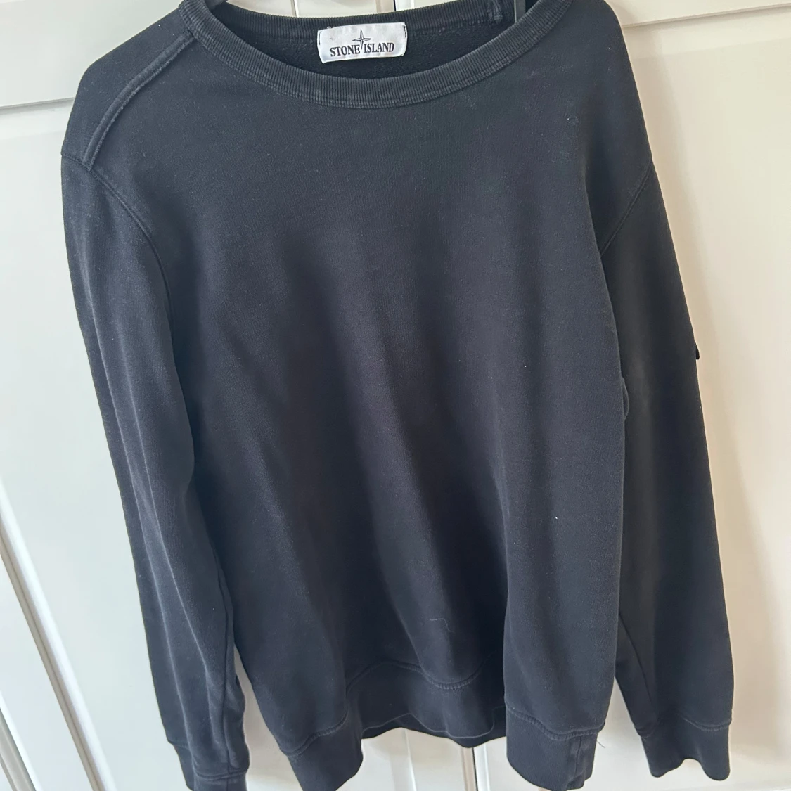 Svart långärmad sweatshirt från Stone Island med klassisk rund hals och ikonisk logotyp-patch på vänster ärm. Tröjan är i mjuk bomull och har en clean, stilren look som passar perfekt till jeans eller cargo. Snyggt avslut vid ärmslut och midja.