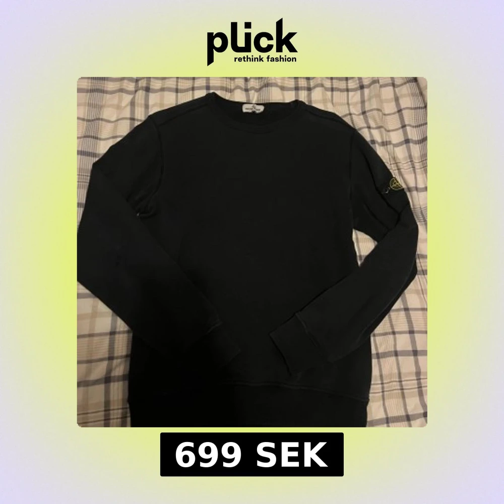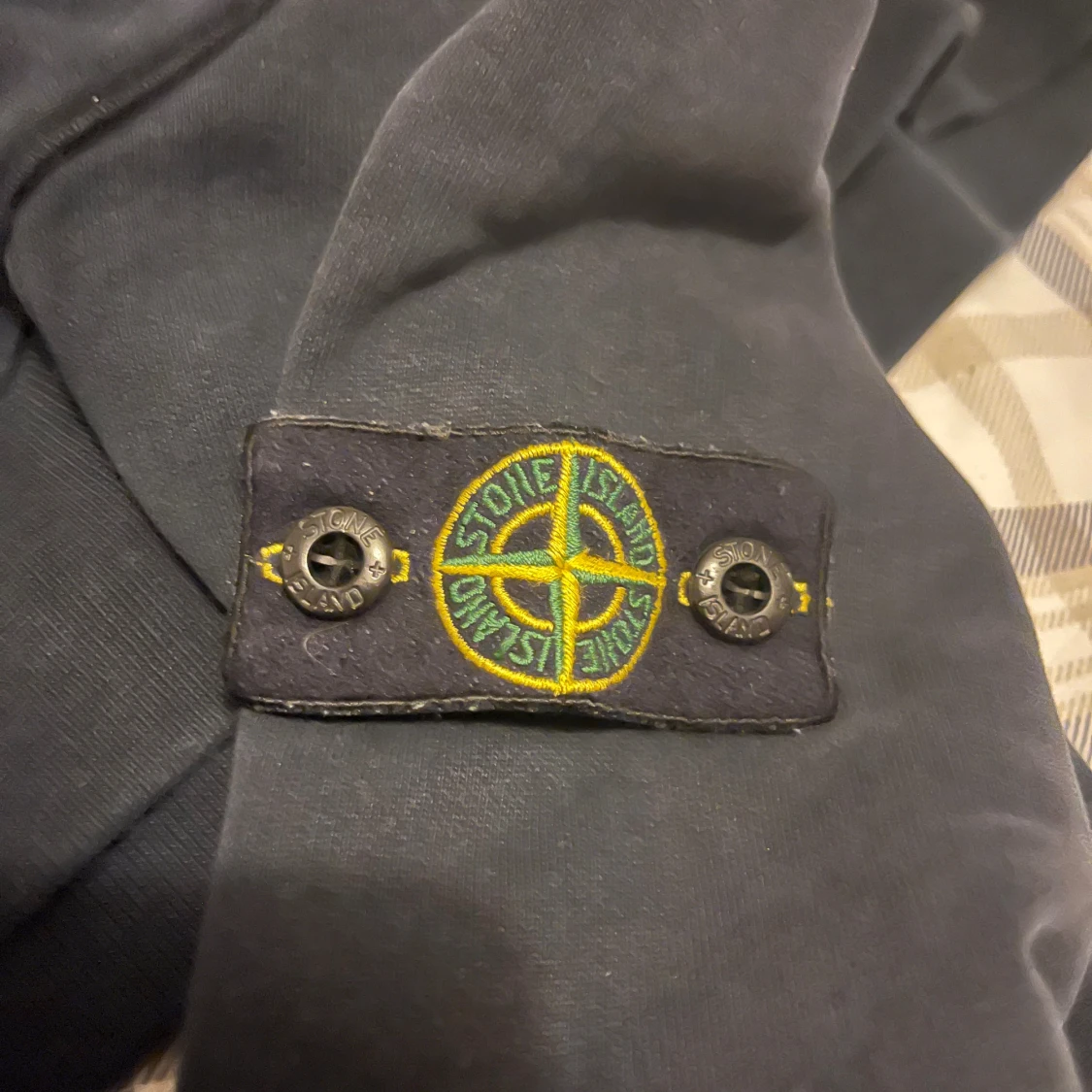 Mörkblå långärmad sweatshirt från Stone Island. Har ett litet hål vid högra armbåge och är lite småhål i slutet av vänstra armen. Smått som man inte tänker på och kan säkert laga. Nypris 3000kr mitt 699 . Vid snabb affär kan sänkas. Hör av dig vid någon fråga. Storlek S/M