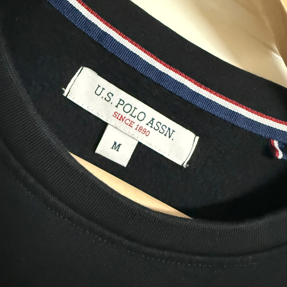 En svart sweatshirt från U.S. Polo Assn. med rund hals och diskret röd logga broderad på bröstet. Tröjan har långa ärmar och ribbade muddar vid ärmslut och nederkant. Perfekt för en chill och stilren look.