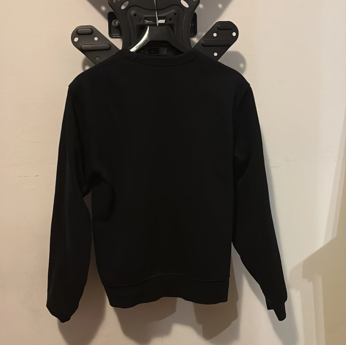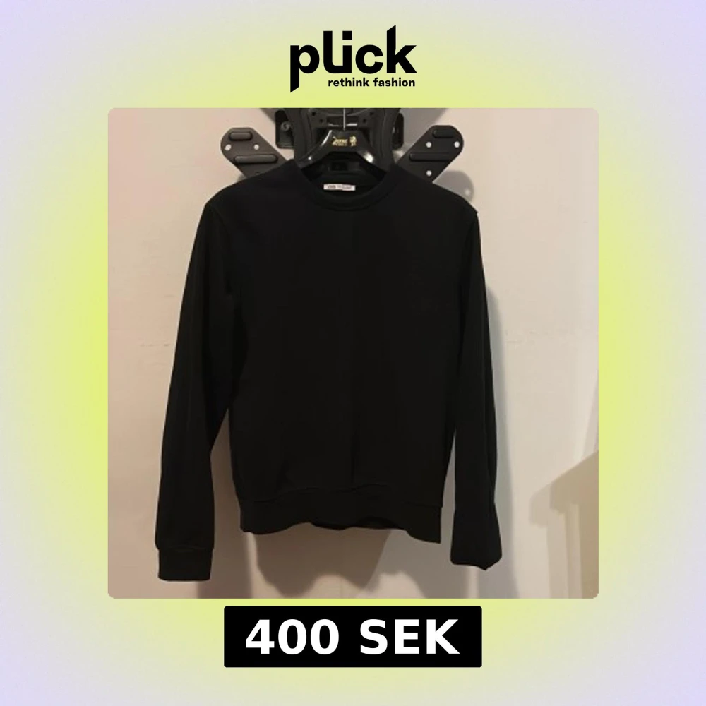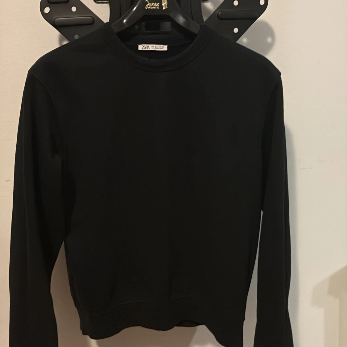 En stilren svart sweatshirt från Zara med rund hals och långa ärmar. Tröjan har en klassisk passform och är tillverkad i mjukt material som känns skönt mot huden. Perfekt för dig som gillar enkel och clean stil.