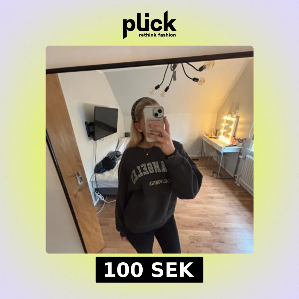 Cool svart sweatshirt från Gina Tricot med tryck 'Los Angeles California' i vitt framtill. Oversized fit med breda muddar vid ärmslut och nederkant. Perfekt till jeans eller leggings för en avslappnad vibe.