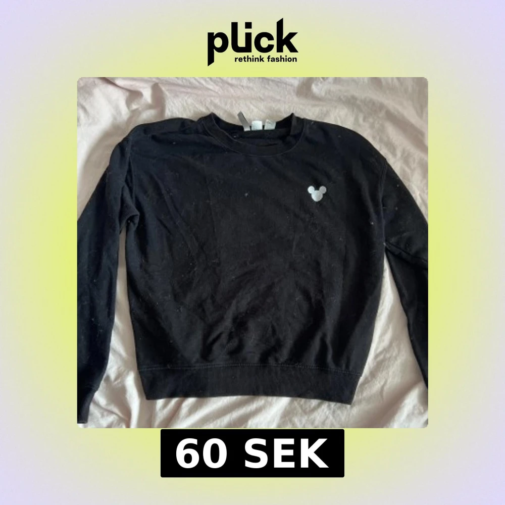 Svart sweatshirt med lång ärm och rund hals. På bröstet finns en broderad vit Mickey Mouse-siluett. Tröjan är i mjuk bomull och har ribbade muddar vid ärmslut och nederkant. Perfekt för dig som gillar enkel stil med en touch av Disney.