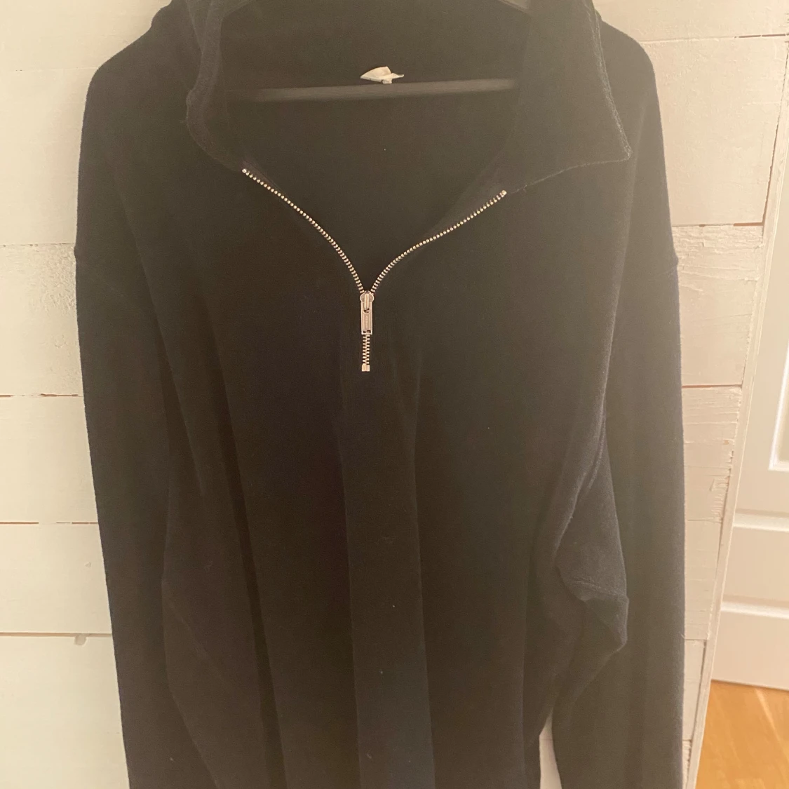 En svart sweatshirt från AIM'N med dragkedja framtill. Tröjan har långa ärmar och är tillverkad av bomull. Perfekt för höst- och vinterbruk. nypris 1000, mitt pris 500