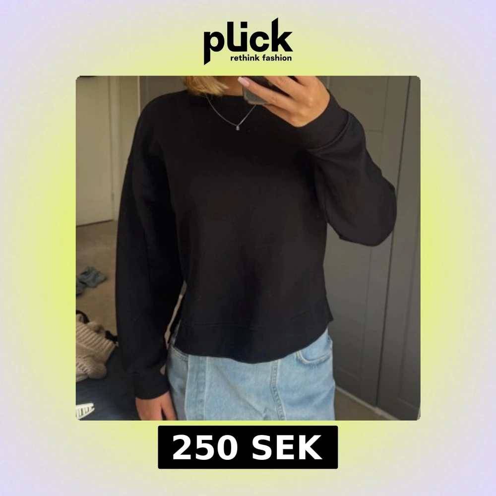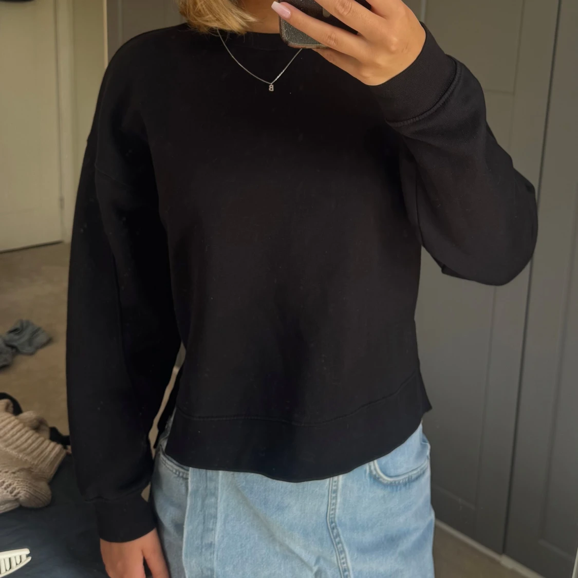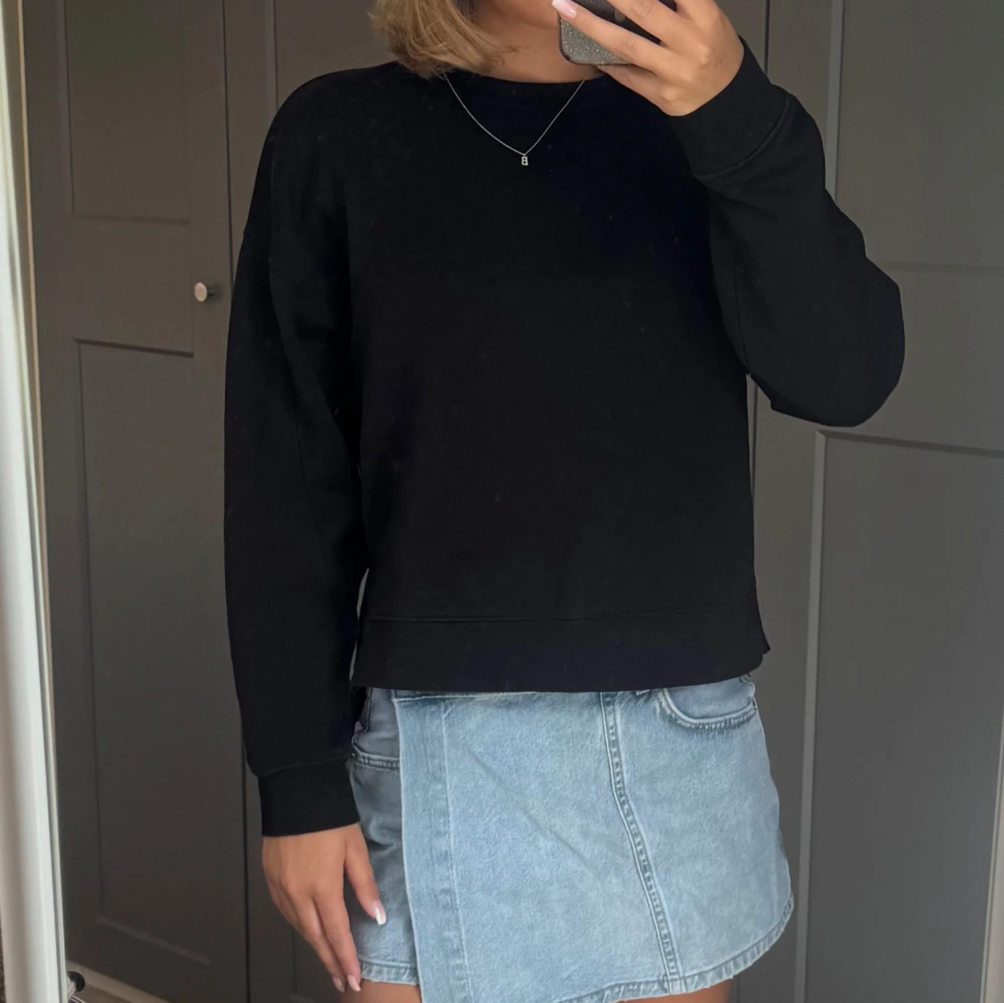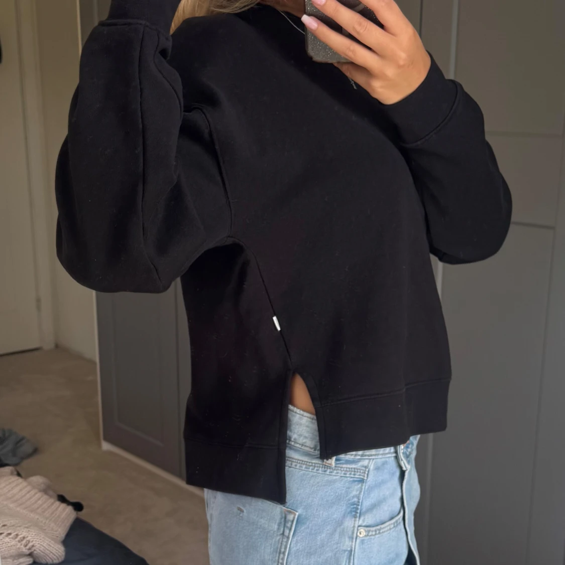 Svart sweatshirt med rund hals och lång ärm, tillverkad i mjuk bomull. Tröjan har en loose passform och cool slitsdetalj på sidorna.