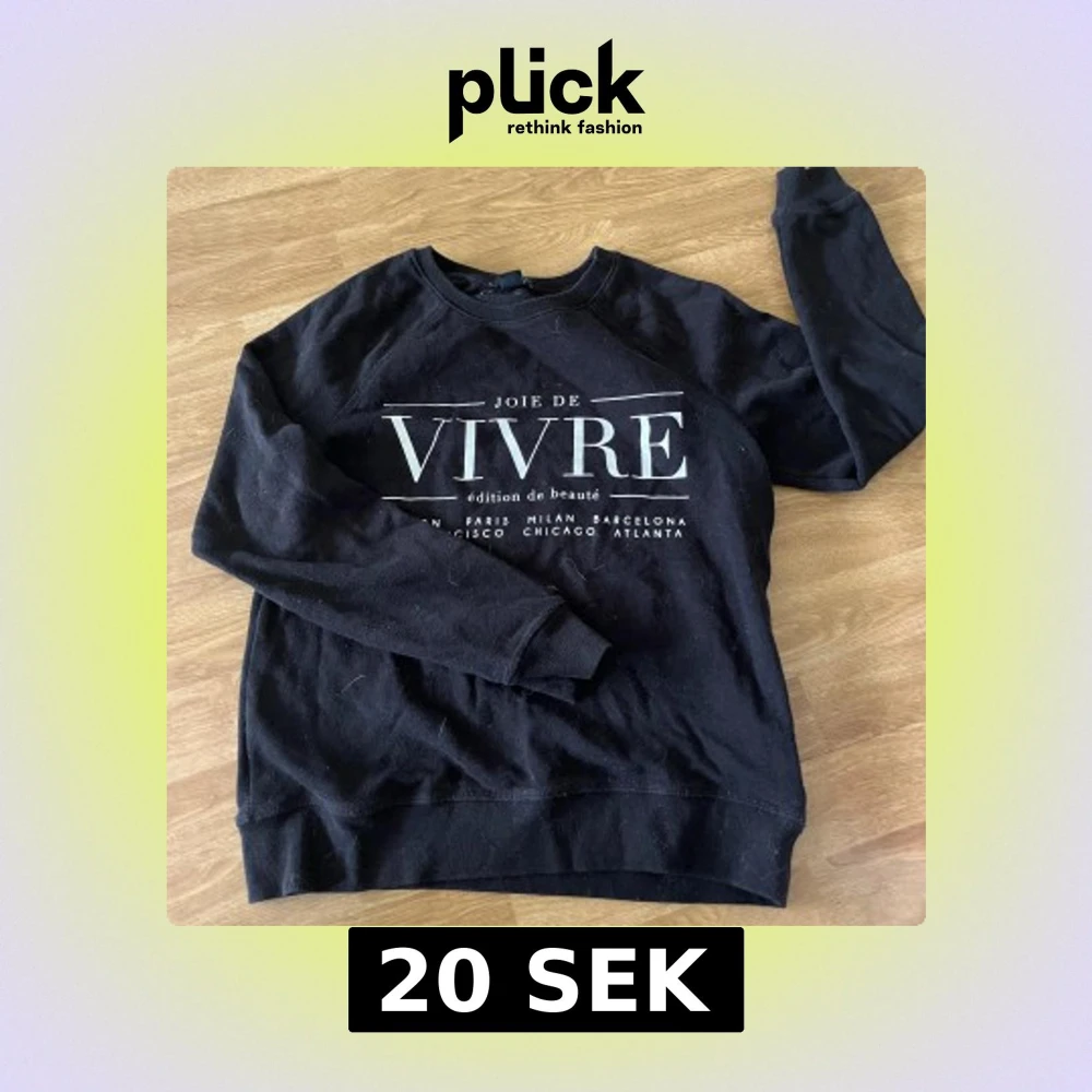 Svart sweatshirt med vitt tryck 'JOIE DE VIVRE' och flera städer på framsidan. Tröjan har rund halsringning och långa ärmar. Perfekt för en chill och stilren look.