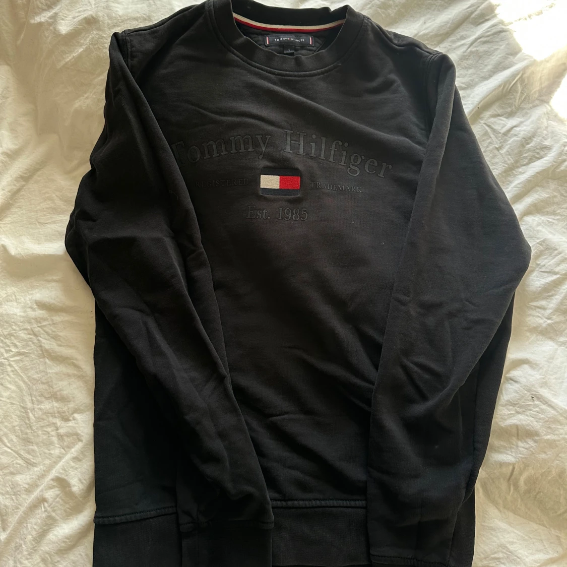 Svart sweatshirt från Tommy Hilfiger med broderad logga och text på bröstet. Klassisk rund halsringning med ribbade muddar och diskreta Hilfiger-detaljer. Tröjan är i mjuk bomull och har lång ärm, perfekt för en clean och stilren look.