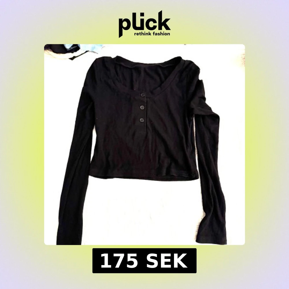 Snygg svart topp med långa ärmar och tre knappar framtill. Aldrig använd för tyckte den var för liten.