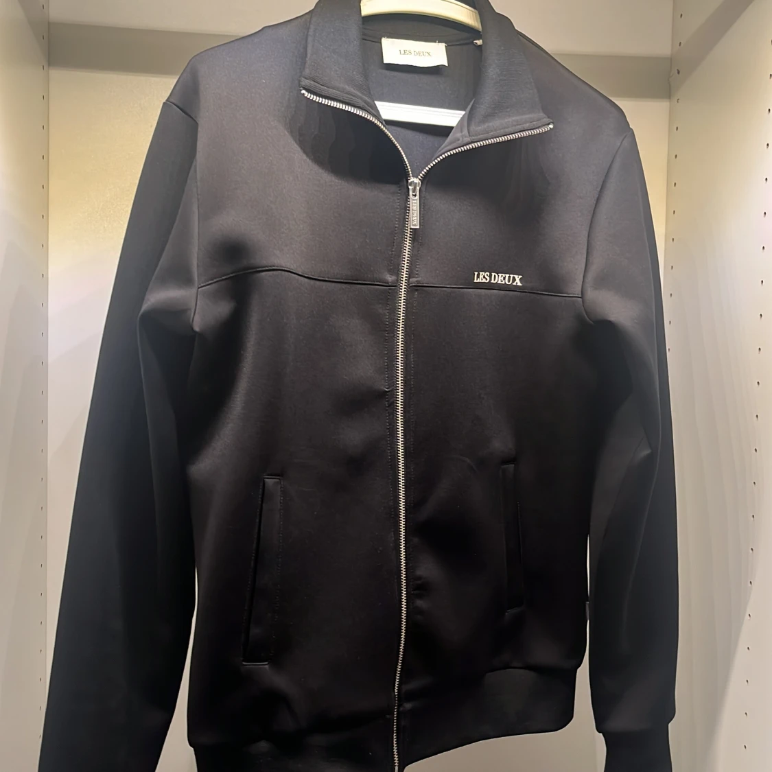 Svart zip hoodie från Les Deux med stilren design och diskret logga på bröstet. Jackan har hel dragkedja framtill, ståkrage och två fickor. Materialet är mjukt och stretchigt, perfekt för en clean och stilig look.