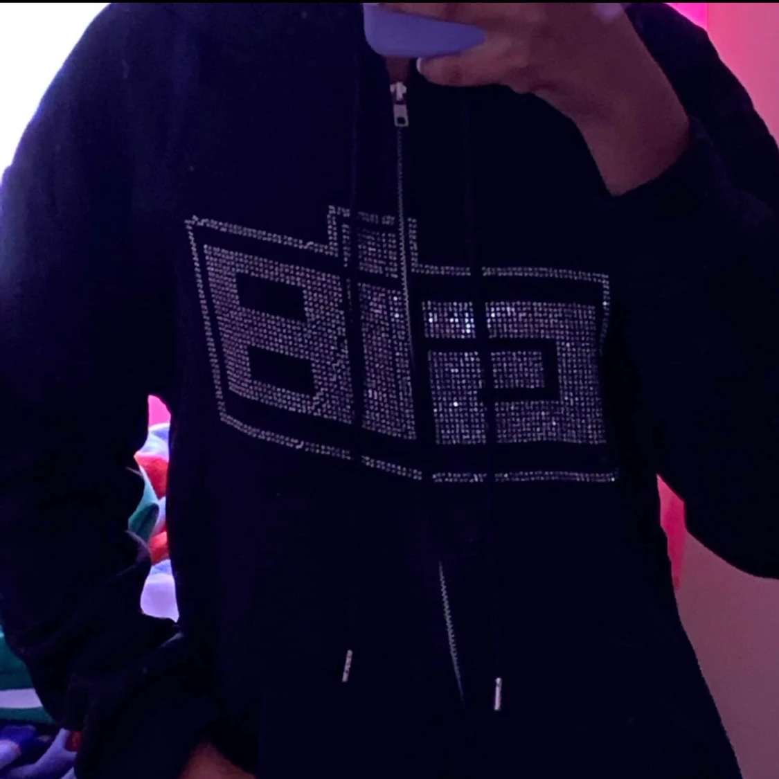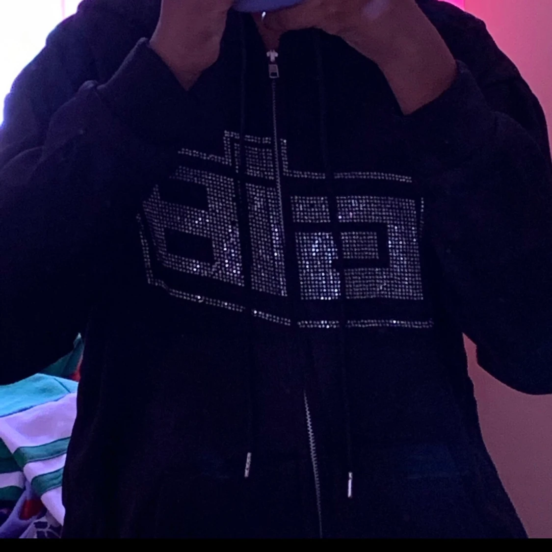 FÖRSTA BILDEN ÄR LÅNAD! Säljer ännu en gång en ny rhinestone hoodie! Den är som sagt helt ny och har alla rhinestones i plats. Lite oversized och jätte trendig just nu!