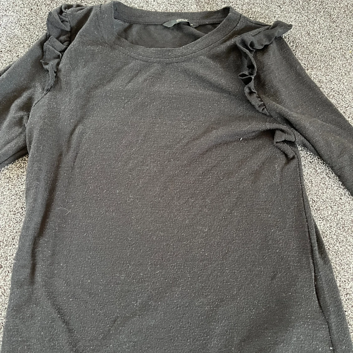 Säljer min svarta tröja med volang på ärmarna. Den är för kort och liten sliten och därav priset. Skriv för fler bilder💕