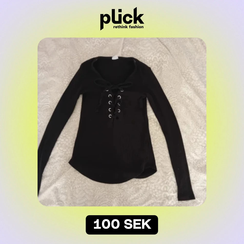 En svat ribbad tröja från gina som är i ett fint skick. Inte använd så mycke så de finns inga skador, de ända som är de är bara snörena som är lite snurrade men de går lätt att fixa!