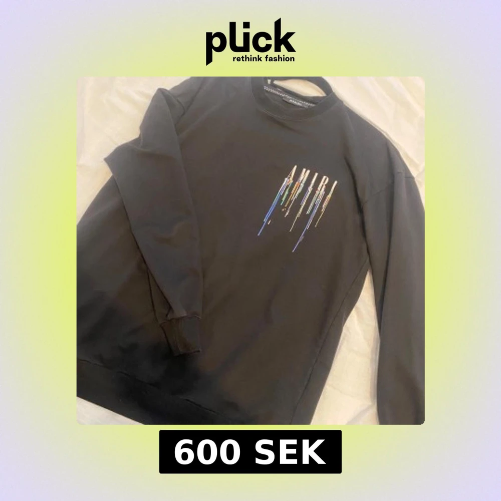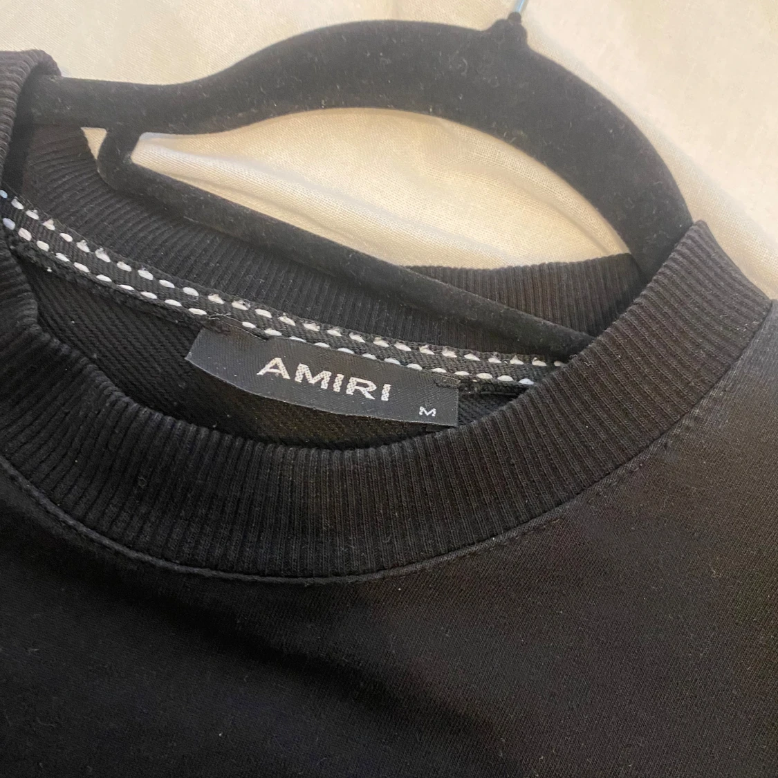 Säljer en svart tröja från Amiri med ett coolt färgglatt tryck som rinner ner från loggan. Tröjan har långa ärmar och ribbade muddar vid ärmslut och nederkant. Skriv för fler frågor och bilder🎀