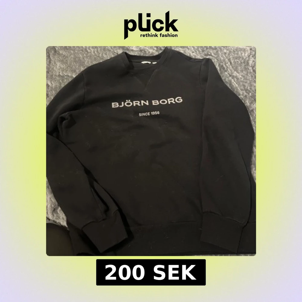 Säljer en svart tröja från Björn Borg med texten 'BJÖRN BORG SINCE 1956' på framsidan. Tröjan har långa ärmar och en klassisk rund halsringning. Perfekt för en avslappnad stil. Den är också använd men i bra skick fortfarande!