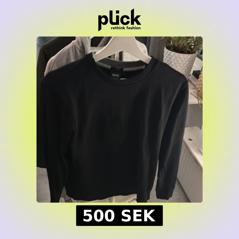 Säljer en stilren svart tröja från Boss. Tröjan har en klassisk design med rund hals och långa ärmar. Perfekt för en minimalistisk look.