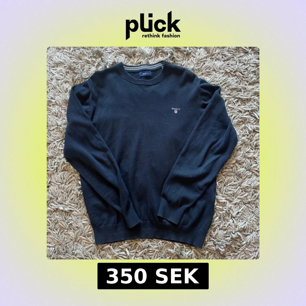 Säljer en stilren svart tröja från GANT med rund hals och diskret logga på bröstet. Perfekt för en klassisk look. Tröjan har långa ärmar och ribbade muddar vid ärmslut och nederkant.