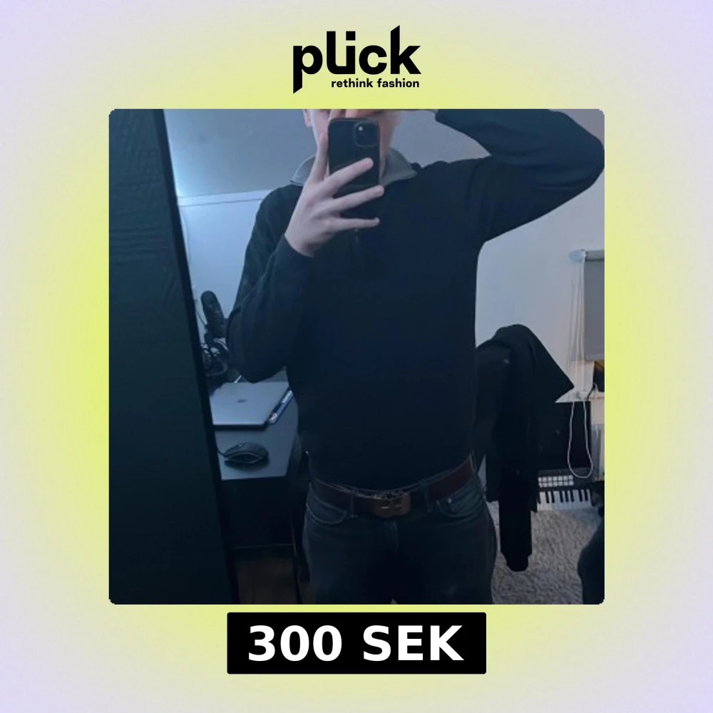 Säljer en stilren svart tröja från Hugo Boss med dragkedja vid halsen och en kontrasterande grå insida på kragen. 8/10 skick har ett ihopsytt hål på ryggen och ett litet hål på framsidan som nt syns väl. Kan gå ner i pris vid snabbt köp.
