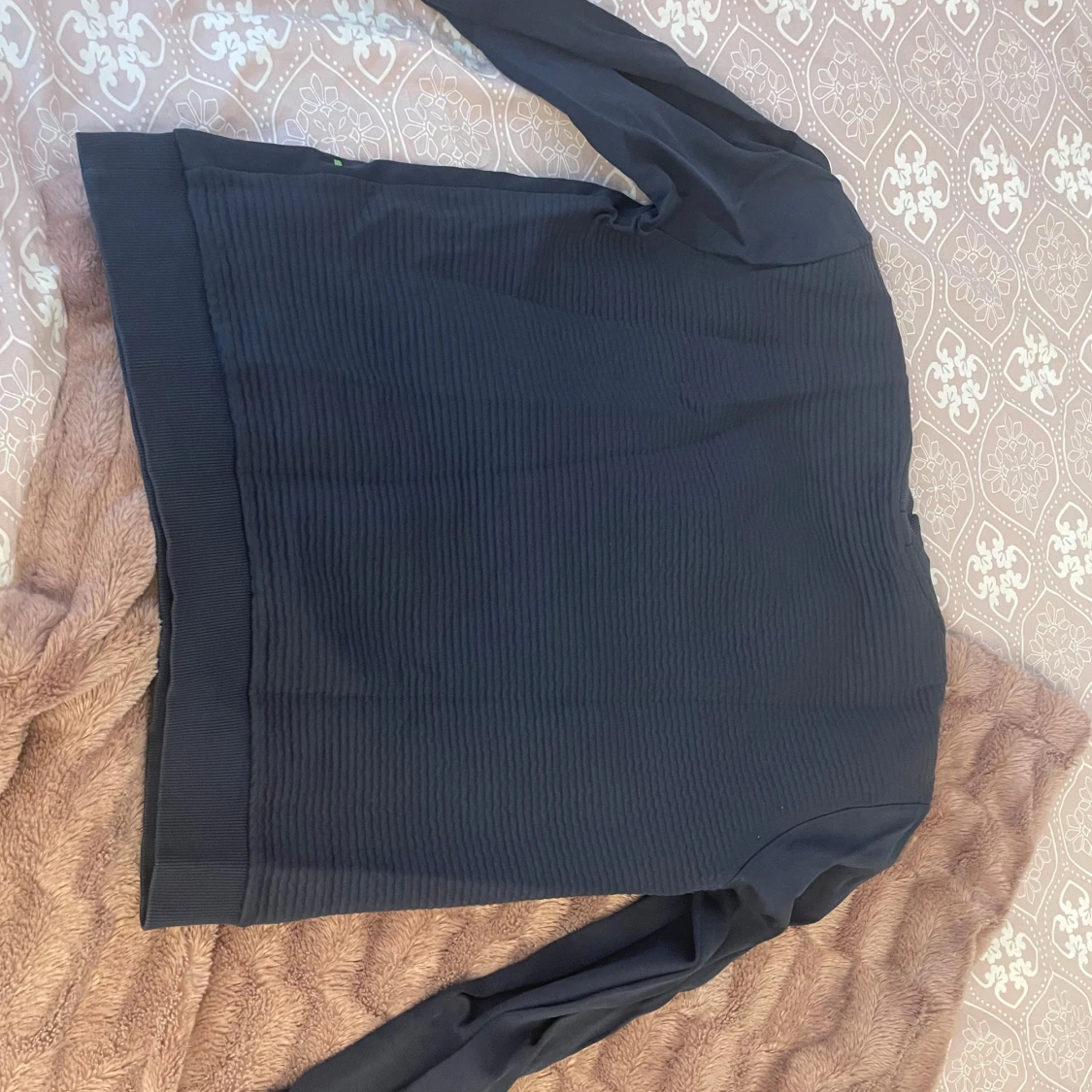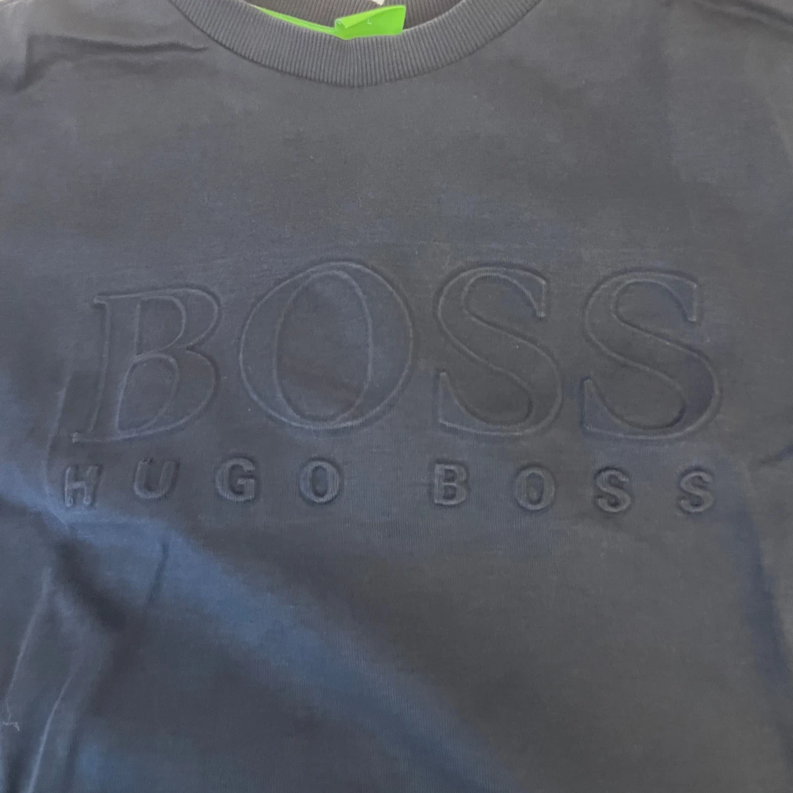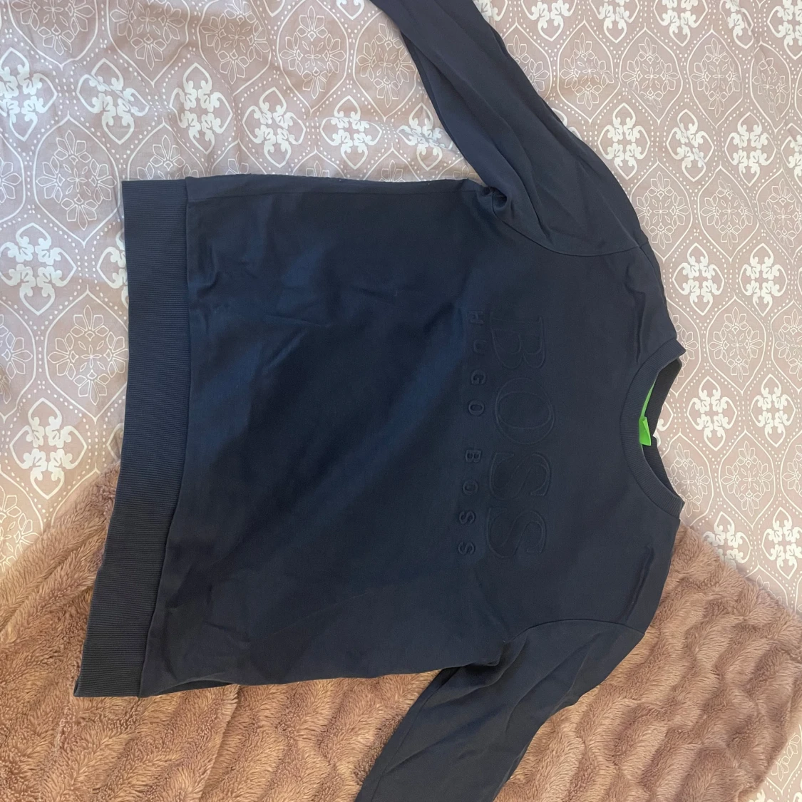 Snygg svart tröja från Hugo Boss med broderad logga på framsidan. Tröjan har långa ärmar och ribbade muddar vid ärmslut och nederkant. Perfekt för en stilren look. Storlek L men passar för M