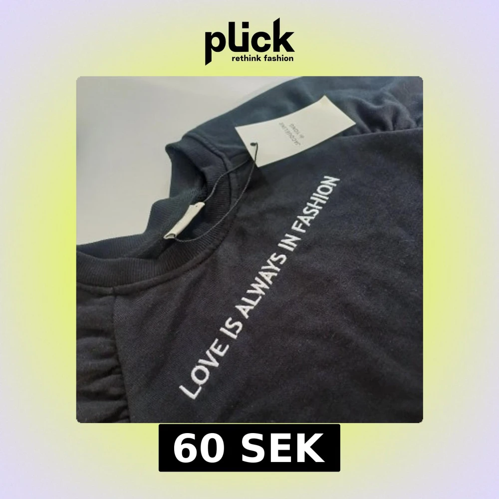Snygg svart tröja från Jacqueline de Yong med texten 'LOVE IS ALWAYS IN FASHION' tryckt på framsidan. Tröjan är i ett nytt skick och har prislappen kvar