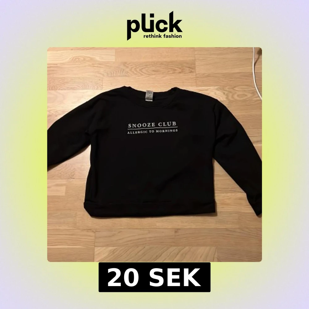 Säljer en svart tröja från Kappahl med texten 'Snooze Club - Allergic to Mornings' tryckt på framsidan. Tröjan har långa ärmar och en avslappnad passform, perfekt för en chill dag.