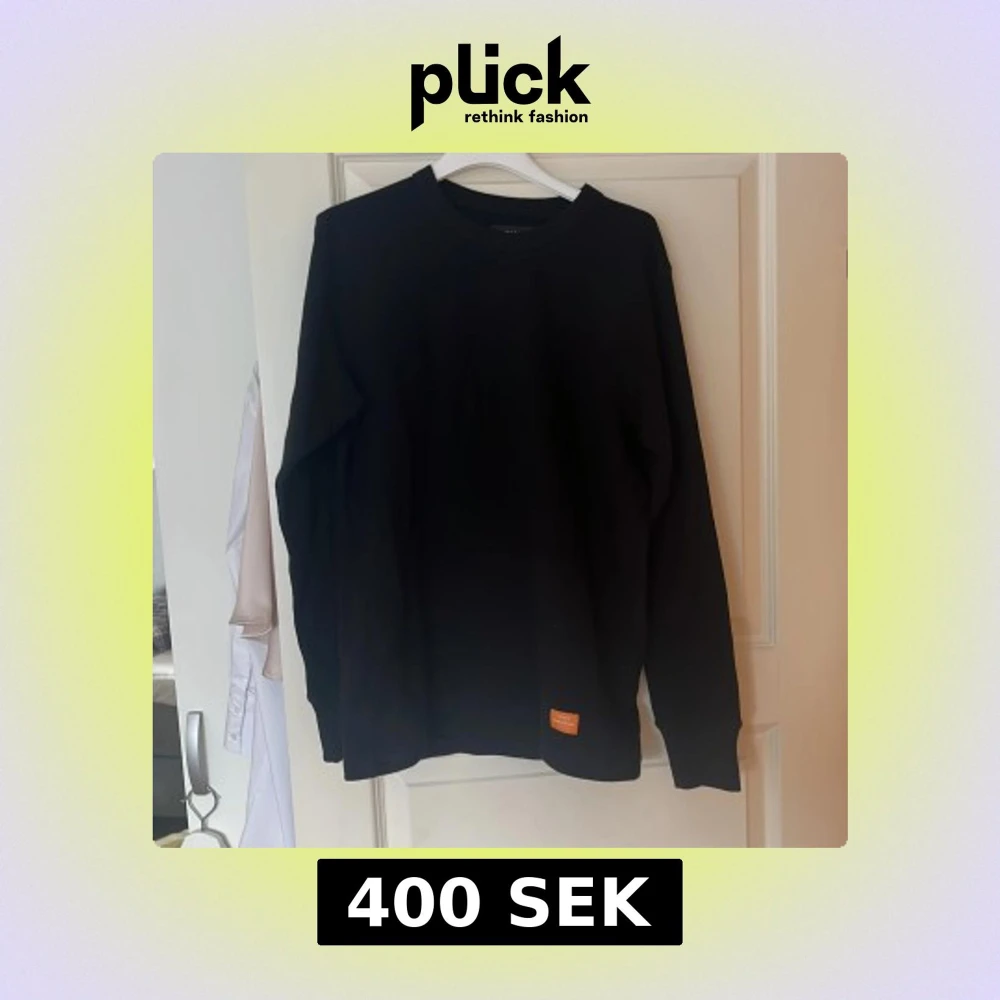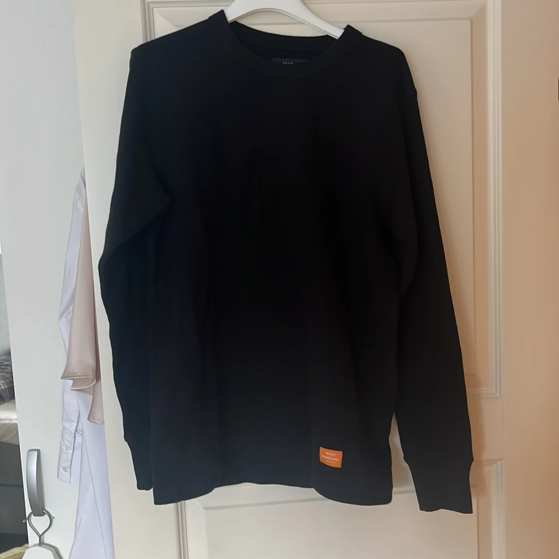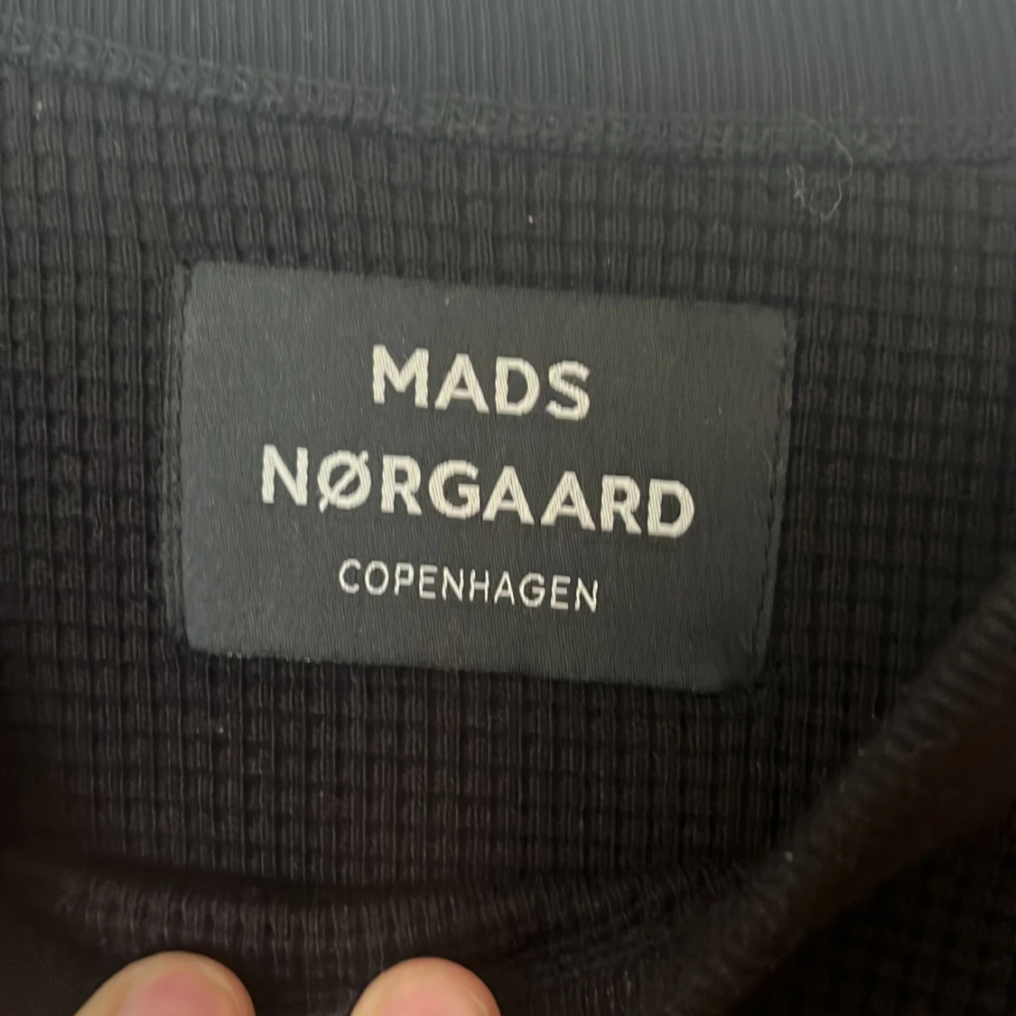 Säljer en stilren svart tröja från Mads Nørgaard. Tröjan har en ribbad struktur och långa ärmar, perfekt för en minimalistisk look. Den är tillverkad i ett mjukt material som ger en bekväm passform.