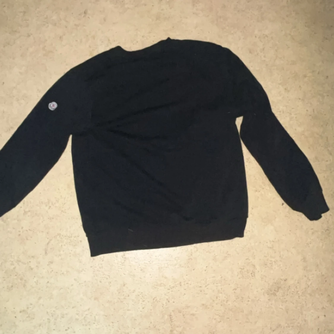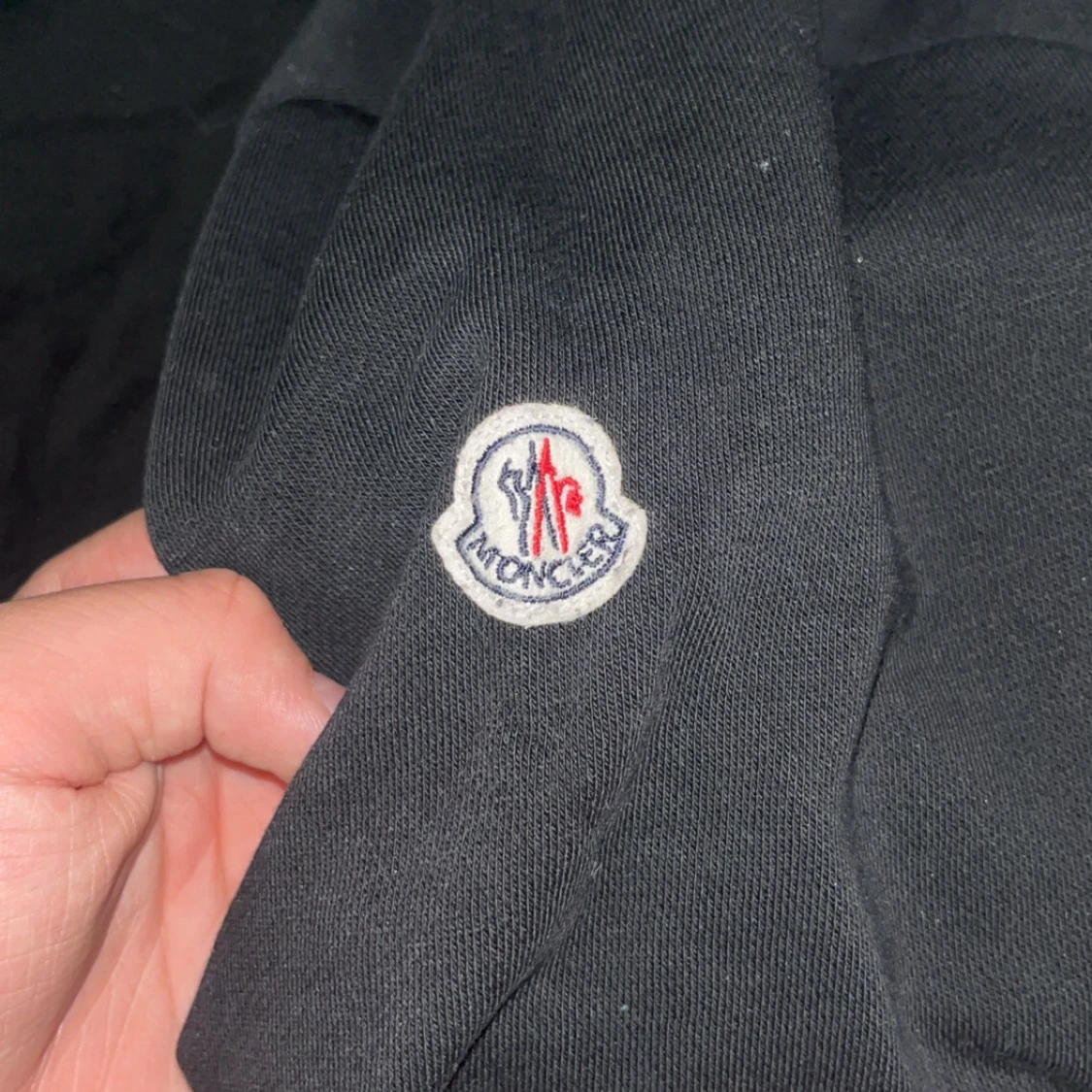 Svart sweatshirt från Moncler med tryckt text på bröstet och klassisk logga broderad på ärmen. Tröjan har rund halsringning och långa ärmar. Tillverkad i mjuk bomull för en skön och avslappnad stil.