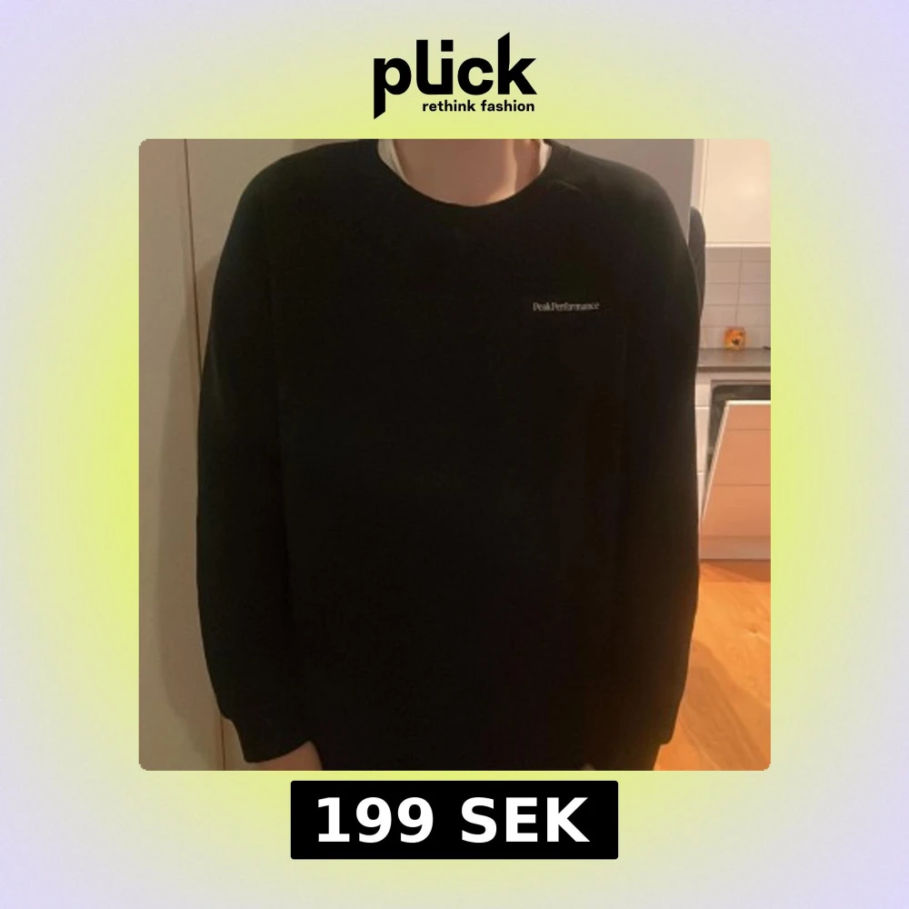 Säljer en stilren svart tröja från Peak Performance. Tröjan har en enkel design med rund hals och långa ärmar. Perfekt för en avslappnad look. Hör av er vid funderingar!