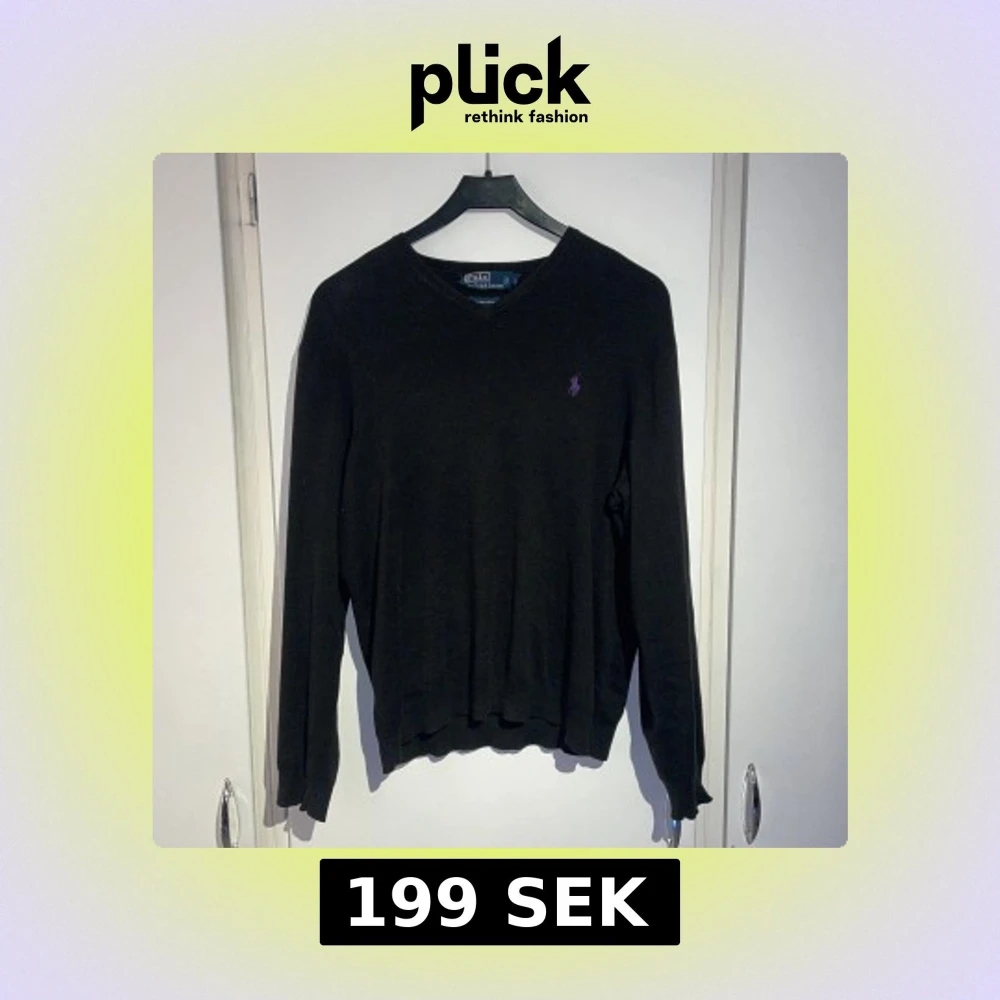 Snygg svart tröja från Polo Ralph Lauren i 100% Pima bomull. Tröjan har en lila broderad logga på bröstet och en v-ringad hals. Perfekt för en stilren look. Priset är ej hugget i Sten✌🏽