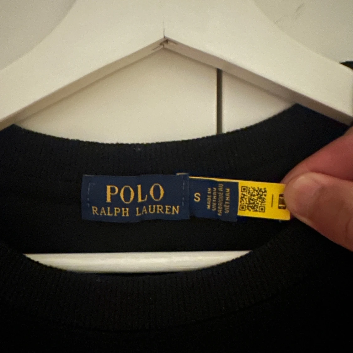 Svart tröja från Polo Ralph Lauren med klassisk rund halsringning och rött broderat logomärke på bröstet. Tröjan har lång ärm och är tillverkad i mjuk bomull, perfekt för en clean och stilren look.