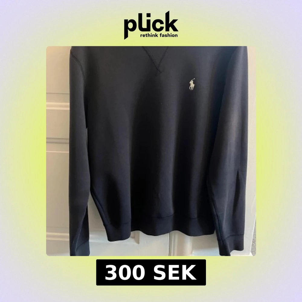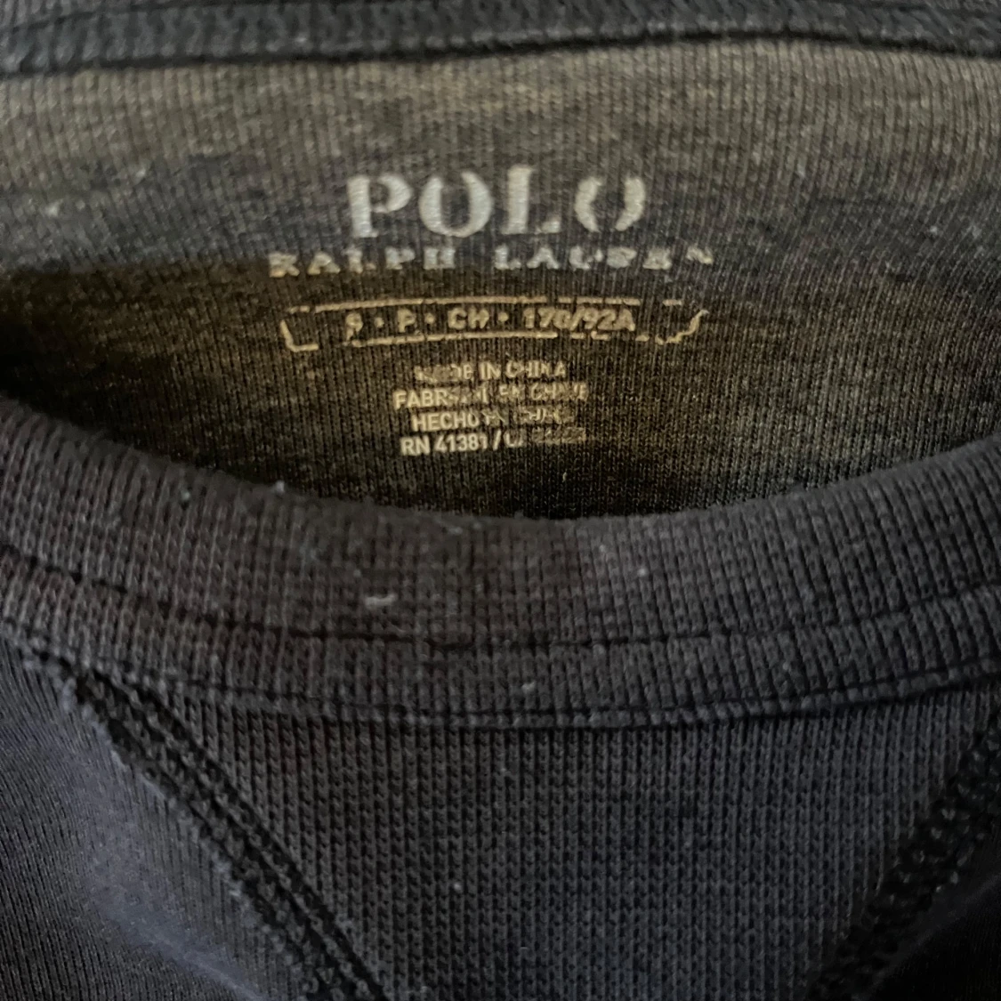 Säljer en stilren mörkblå tröja från Polo Ralph Lauren med deras ikoniska logga på bröstet. Tröjan har långa ärmar och en klassisk passform. Perfekt för en avslappnad och snygg look.