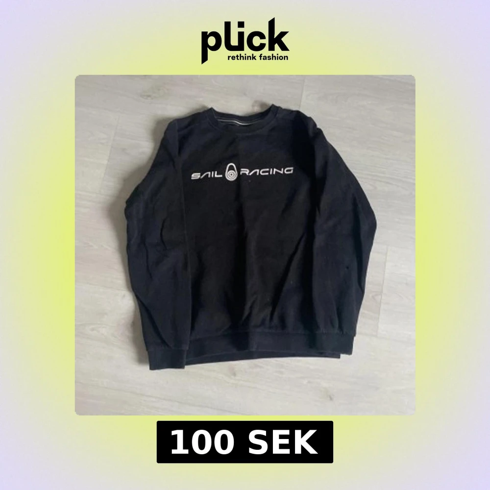 Säljer en svart tröja från Sail Racing med vit logotyp på bröstet. Tröjan har en klassisk design med rund hals och långa ärmar. Perfekt för en stilren och sportig look. Och det finns en liten skada på armbågen men ej synlig när man har på den.
