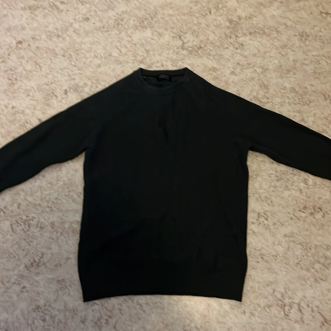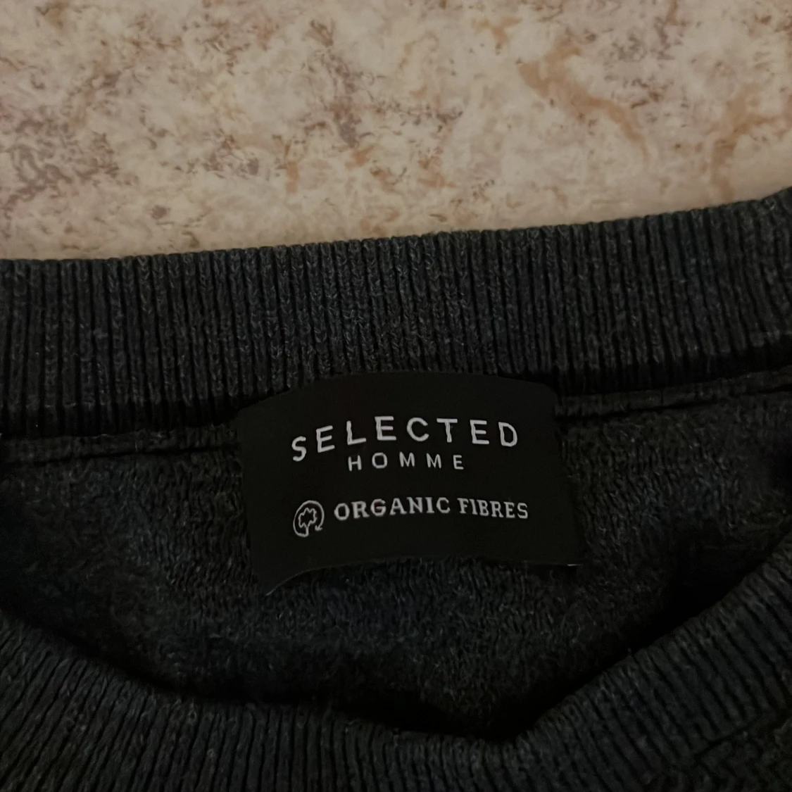Säljer en stilren svart tröja från Selected Homme i storlek M. Tröjan är tillverkad av ekologiska fibrer och har en klassisk design med långa ärmar och rund hals. Perfekt för en minimalistisk garderob.