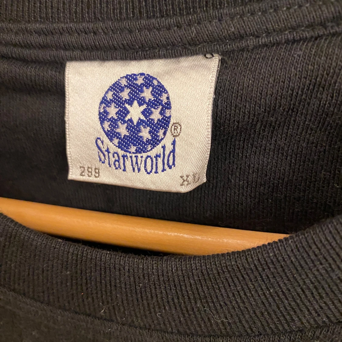 Säljer en klassisk svart tröja från Starworld. Tröjan har en enkel design med rund hals och långa ärmar. Perfekt för en avslappnad stil. Aldrig använd