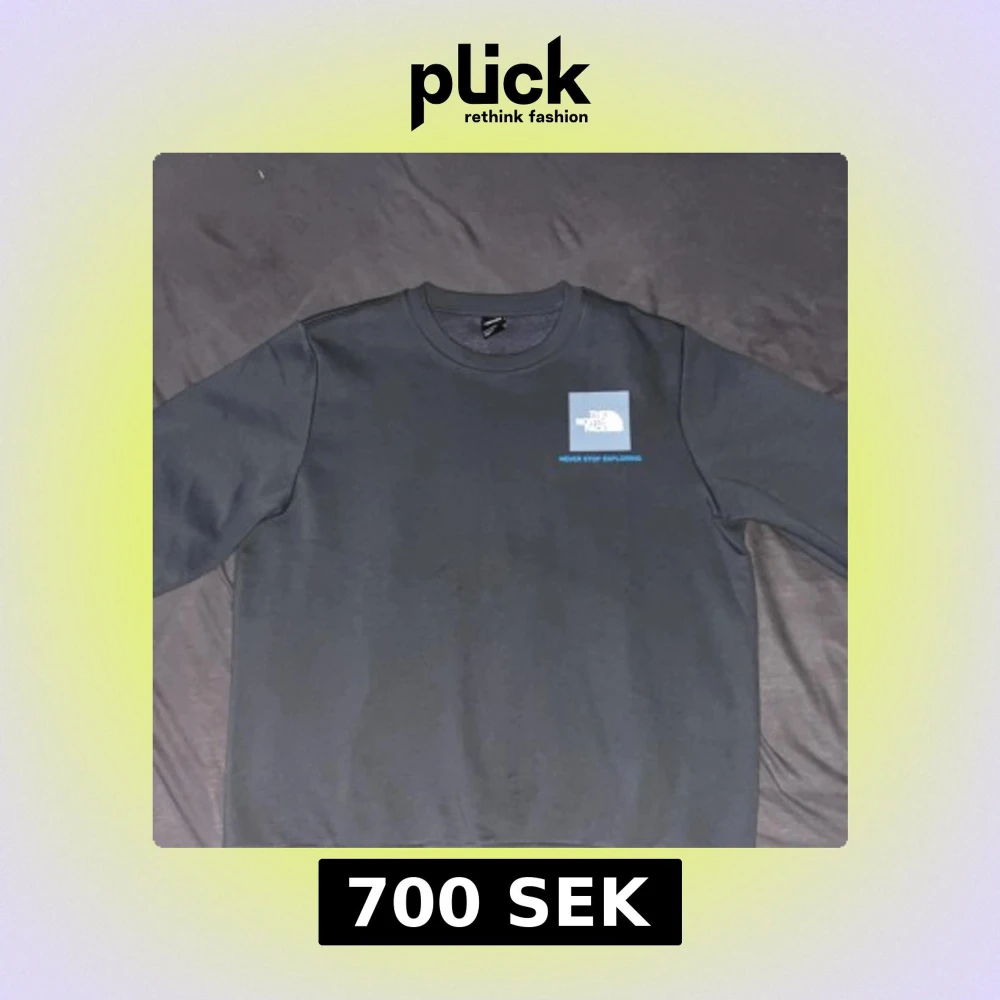 Säljer en stilren grå tröja från The North Face med deras logga tryckt på bröstet och ryggen. Tröjan har långa ärmar och en rund halsringning. Perfekt för en avslappnad stil.