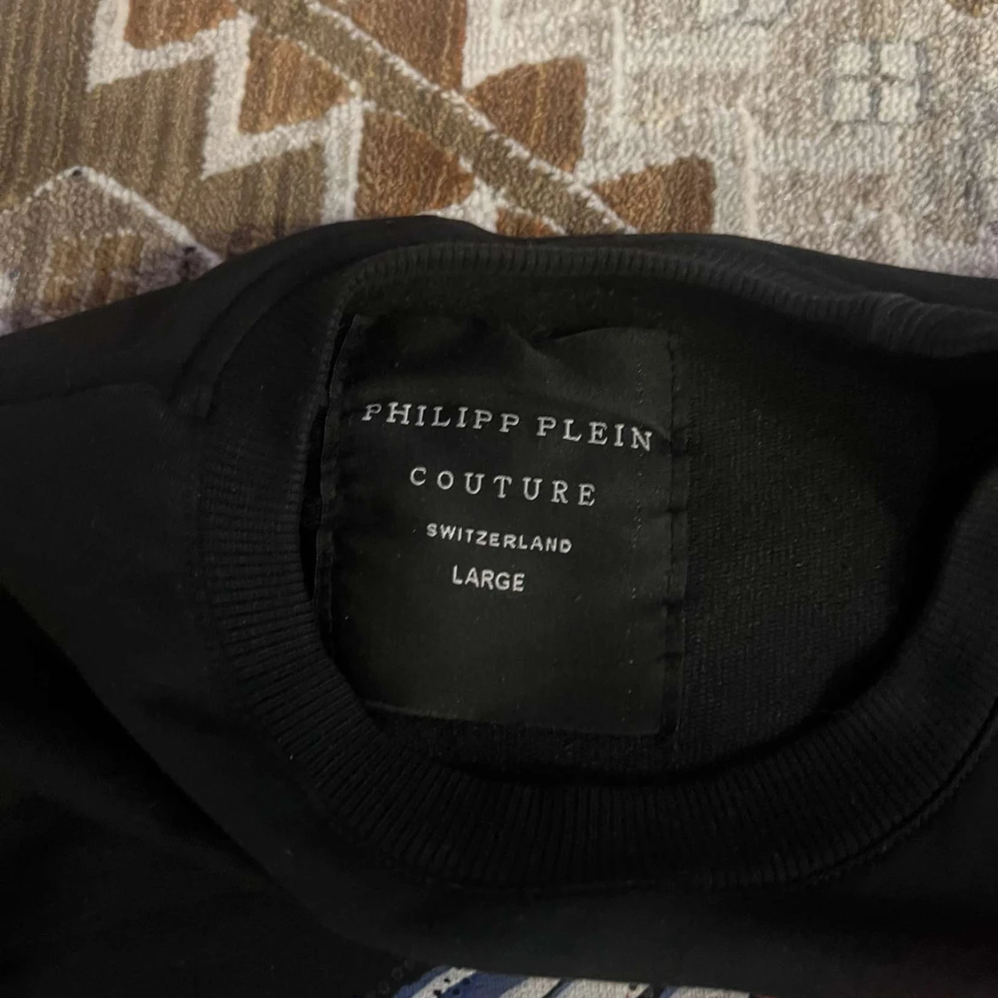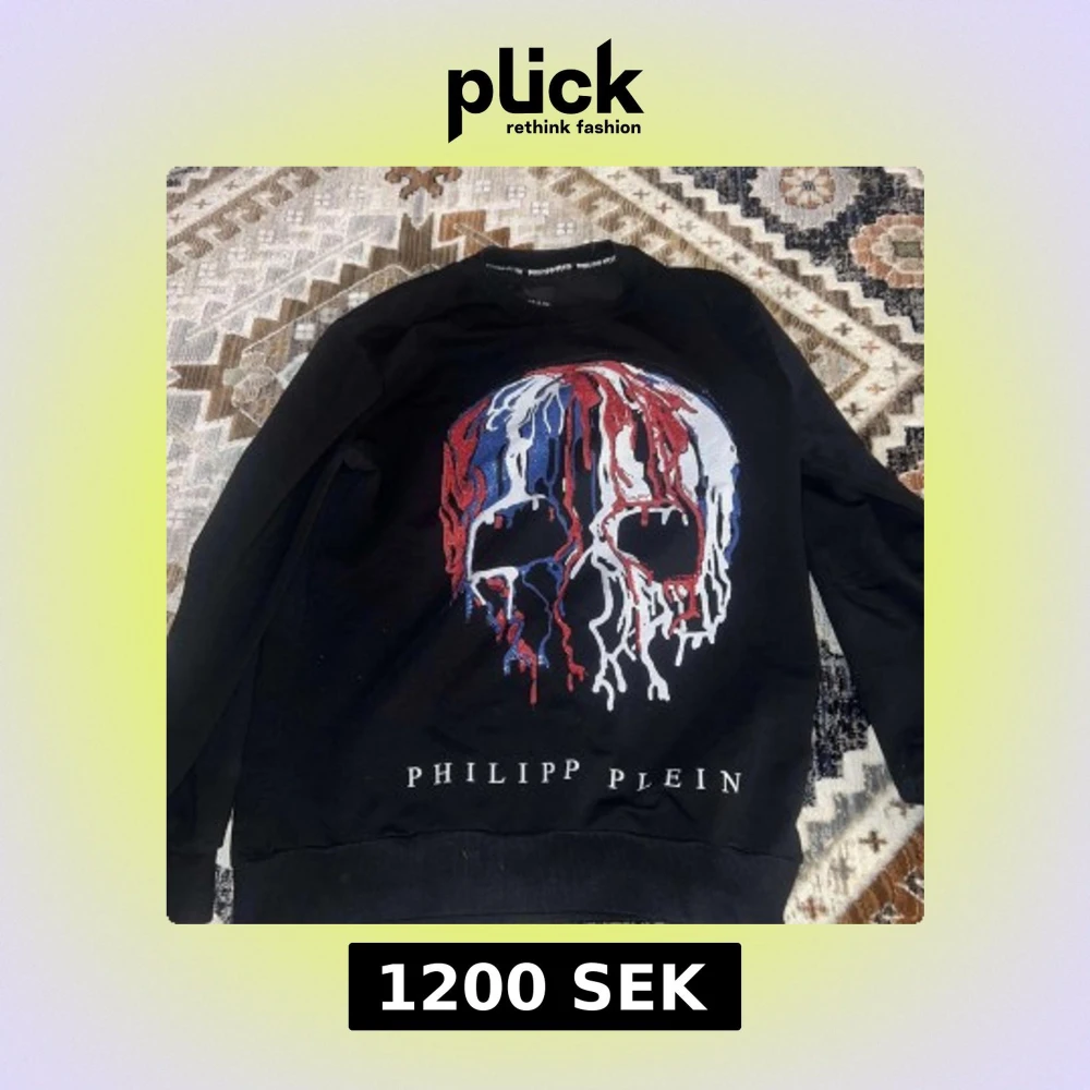 Snygg svart tröja från Philipp Plein med ett stort dödskallemotiv i rött, vitt och blått på framsidan. Tröjan har långa ärmar och en rund halsringning. Perfekt för en cool och avslappnad stil.