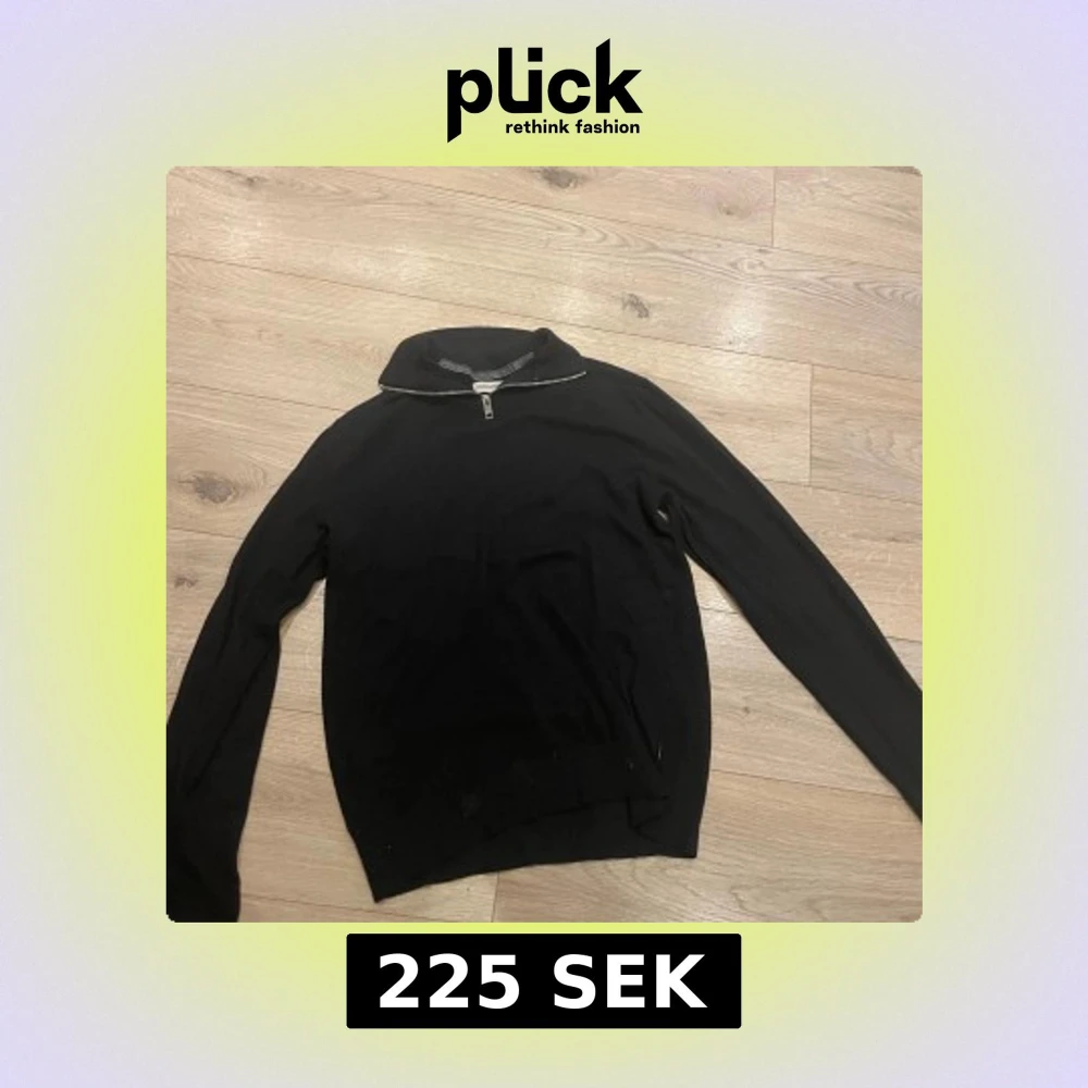 Säljer en stilren svart tröja med dragkedja vid halsen. Tröjan har långa ärmar och en enkel design som passar till många tillfällen. Perfekt för en avslappnad look.