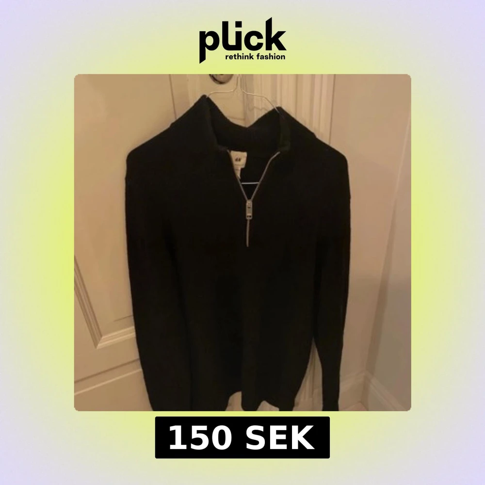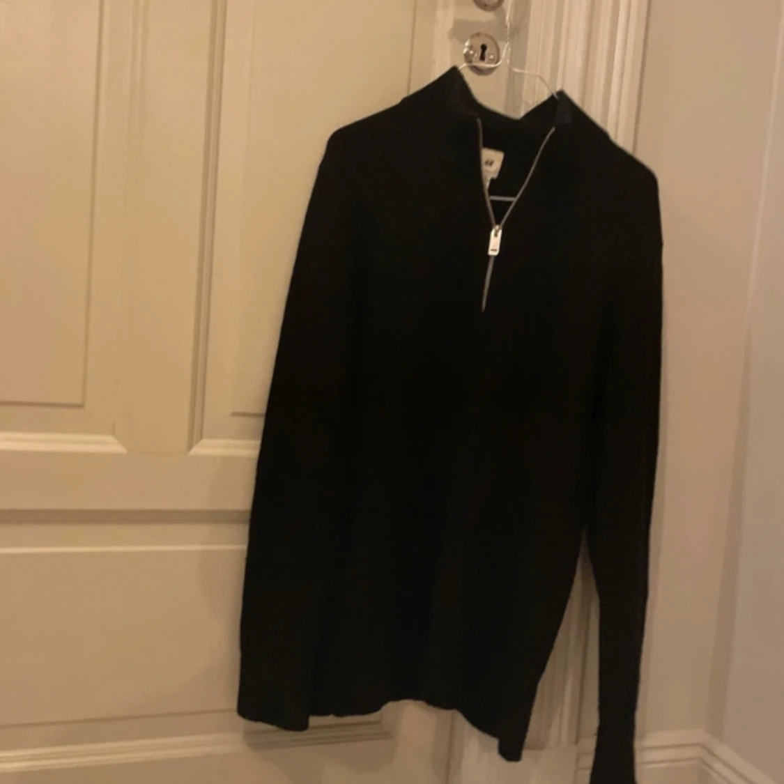 Säljer en stilren svart tröja från H&M med dragkedja i halsen. Perfekt för kyligare dagar och enkel att matcha med olika outfits. Tröjan har långa ärmar och är tillverkad i ett mjukt material.
