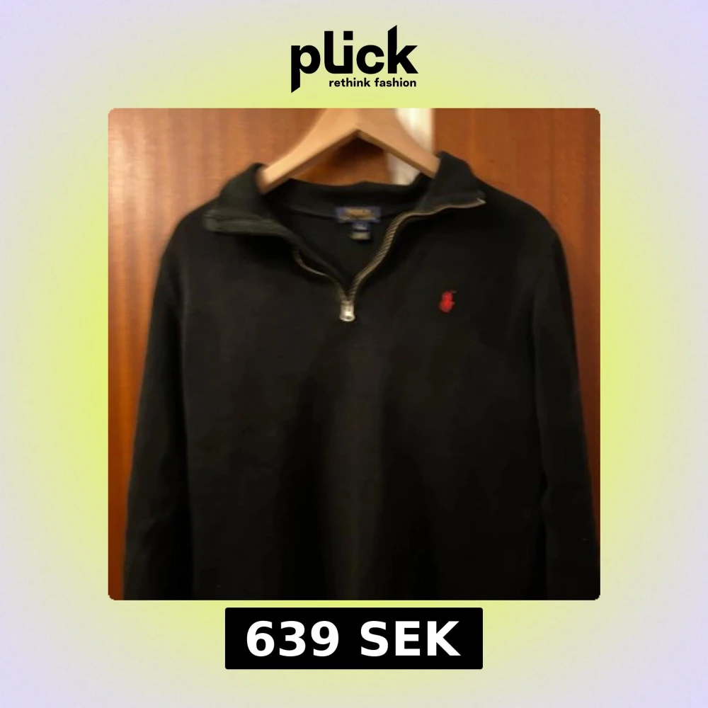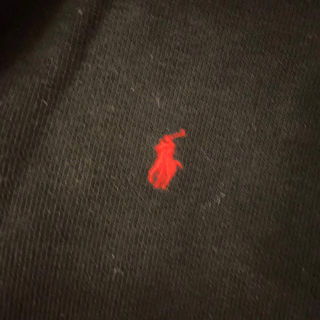 Snygg svart tröja från Ralph Lauren med en liten röd broderad logotyp på bröstet. Tröjan har en dragkedja vid halsen och långa ärmar. Perfekt för en stilren look.