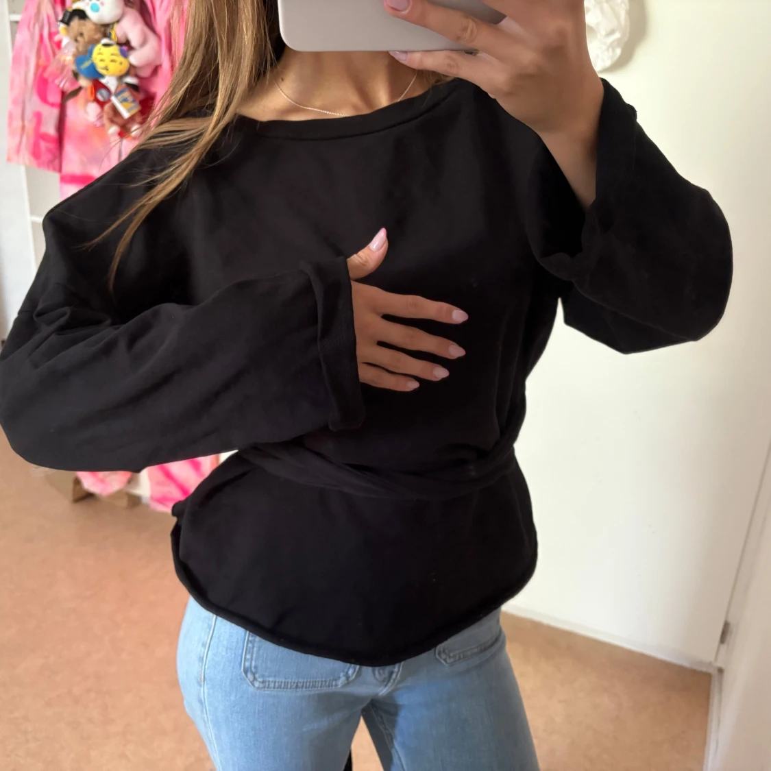 Svart tröja med breda ärmar och knytband i midjan som ger en snygg siluett💓