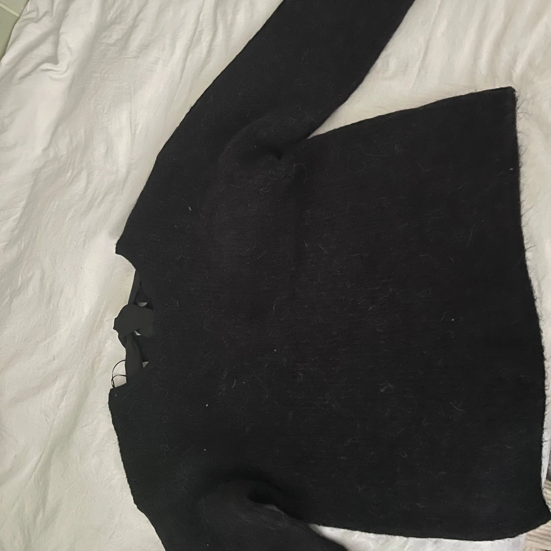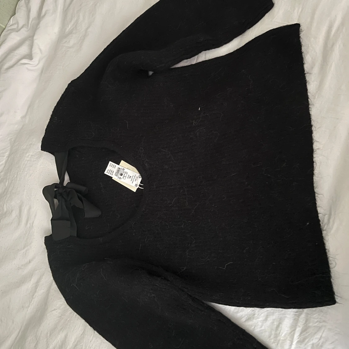 Snygg svart tröja med en dekorativ rosett vid ryggen. Tröjan har långa ärmar och är perfekt för kyligare dagar. Enkel och stilren design som passar till många olika outfits.