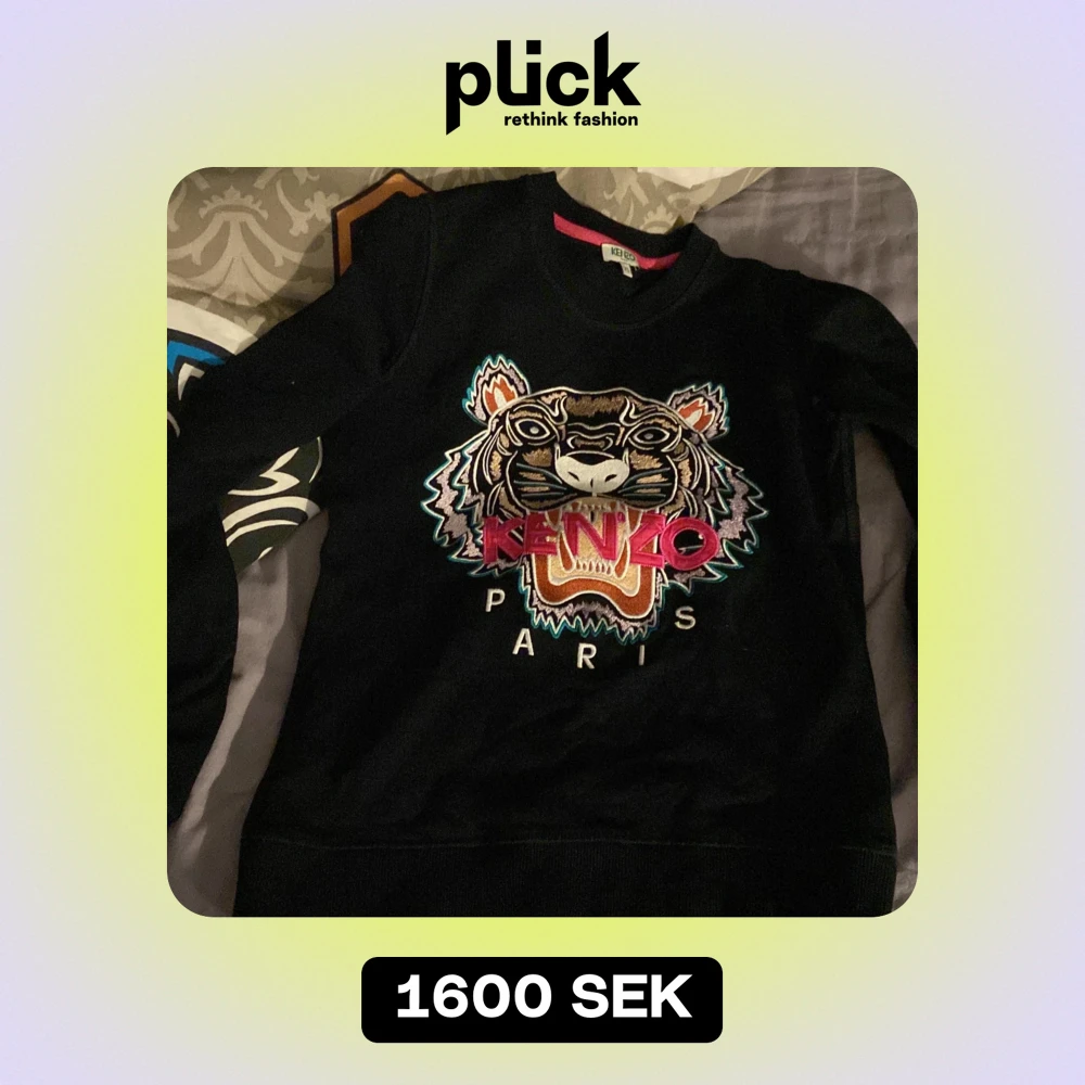 Säljer en svart tröja från Kenzo i storlek XS. Den har ett coolt tigerbroderi på framsidan med texten 'Kenzo Paris' i rosa och vita bokstäver. Perfekt för att ge din outfit en edgy touch! 🐯