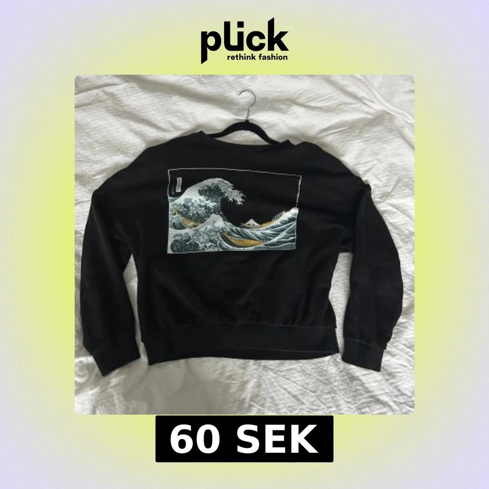 Snygg svart tröja med ett stort vågmotiv på framsidan. Perfekt för en avslappnad stil med en konstnärlig touch. Tröjan har långa ärmar och en bekväm passform.