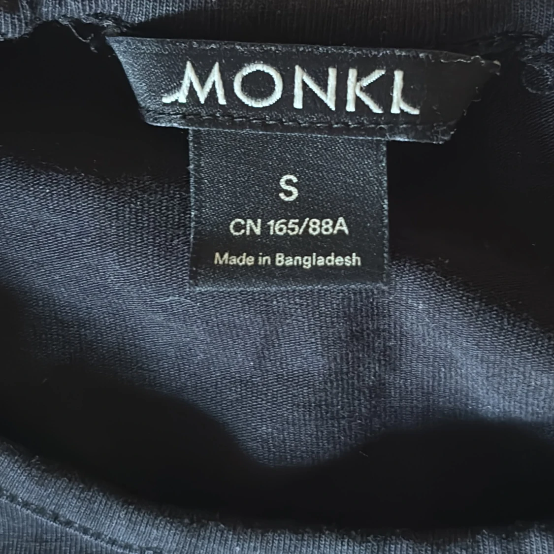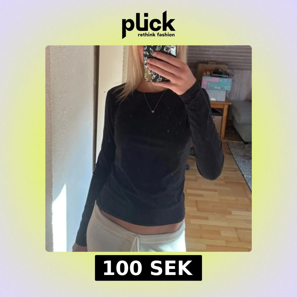 Säljer en svart tunn långärmad tröja från Monki. Tröjan har en enkel och stilren design med rund hals och är gjord i ett mjukt, sammetsliknande material som känns bekvämt🙌🏼🙌🏼💕💕
