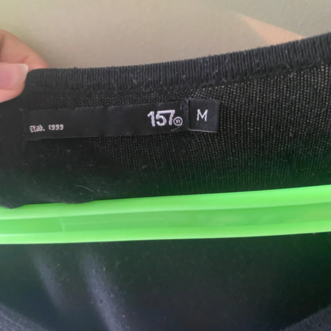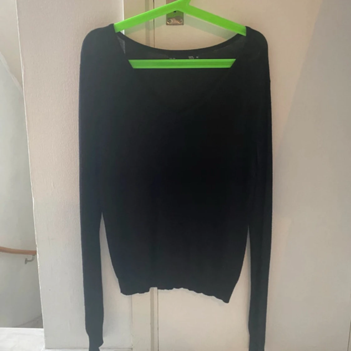 Svart v-ringad tröja från 157 i storlek M. Tröjan har lång ärm och är i ett mjukt, stickat material som känns skönt mot huden.