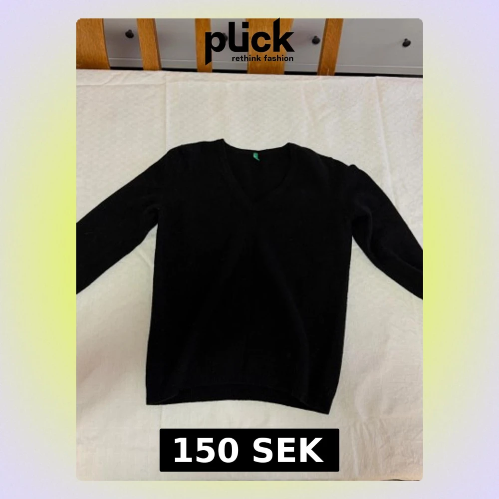 Svart v-ringad tröja från United Colors of Benetton med broderad logga framtill. Tröjan är stickad i mjukt material och har långa ärmar med ribbade muddar. Perfekt för dig som gillar stilrena och klassiska plagg med enkel design.