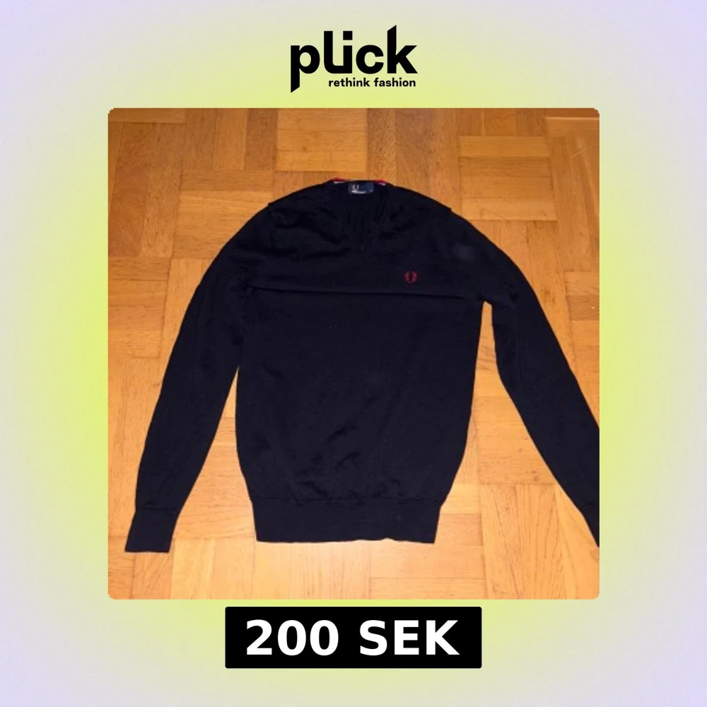 Svart v-ringad tröja från Fred Perry med rött broderat logomärke på bröstet. Tröjan har långärmad passform och ribbade muddar vid ärmslut och nederkant. Perfekt för dig som gillar stilrena och klassiska plagg.