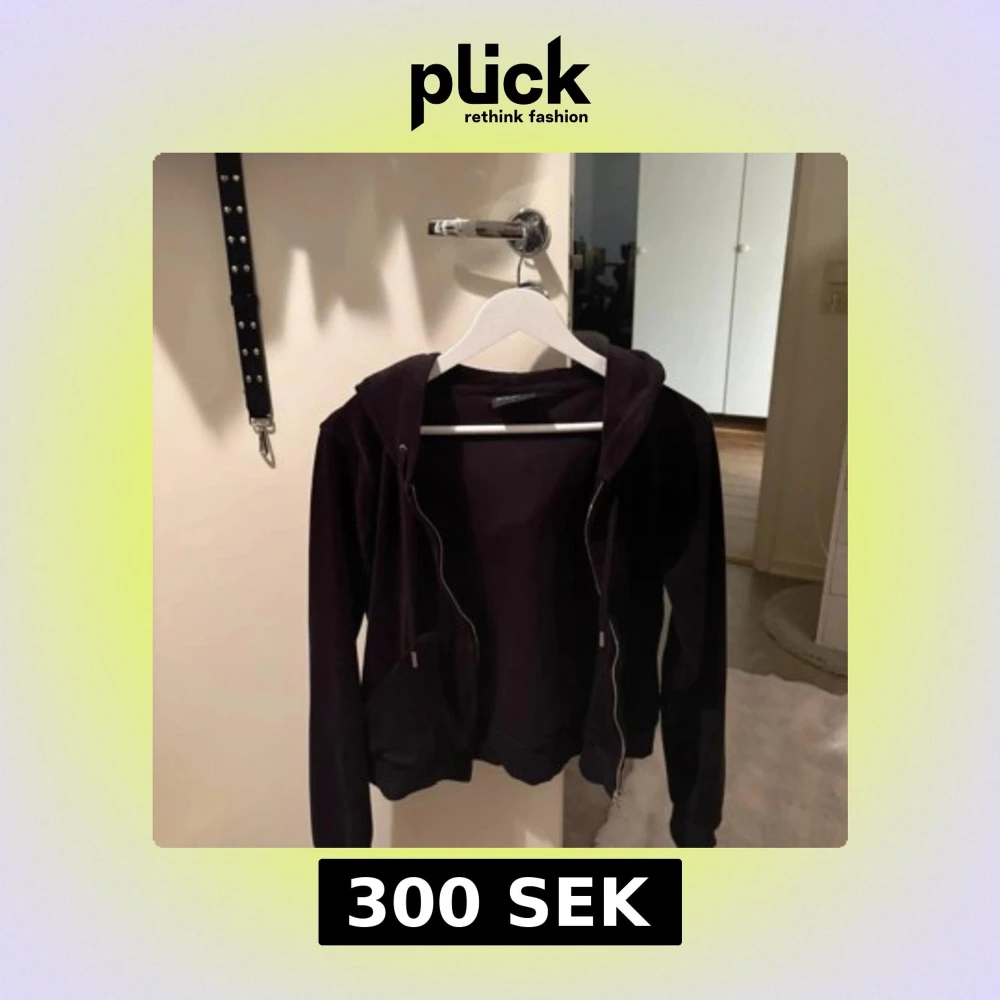 Svart hoodie från Juicy Couture i mjuk velour med dragkedja framtill och huva. Klassisk modell med fickor och långa ärmar, perfekt för en chill och trendig look.