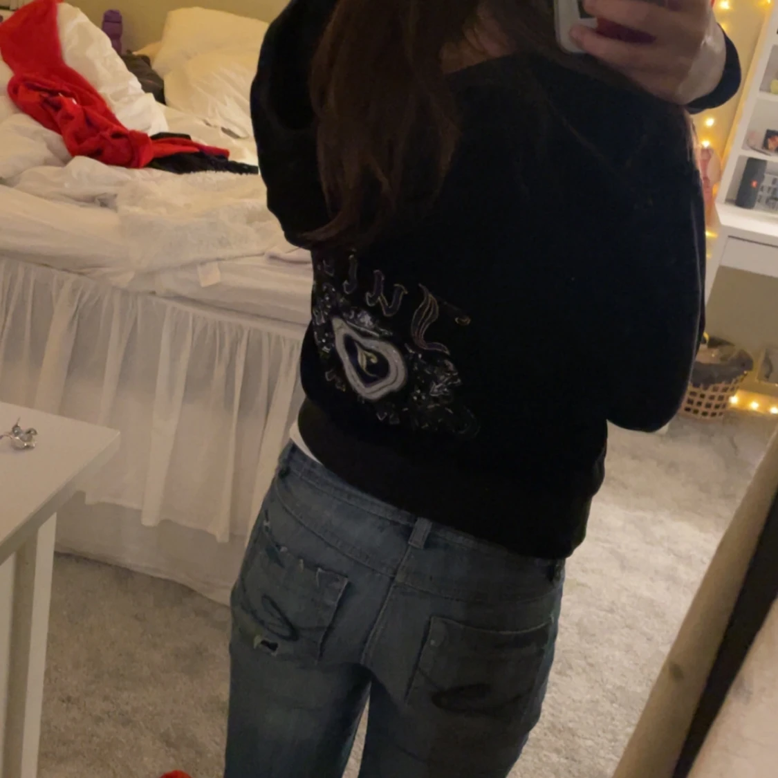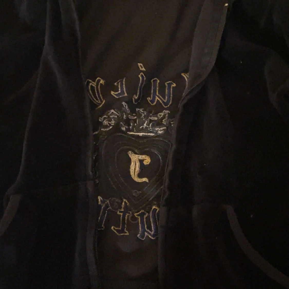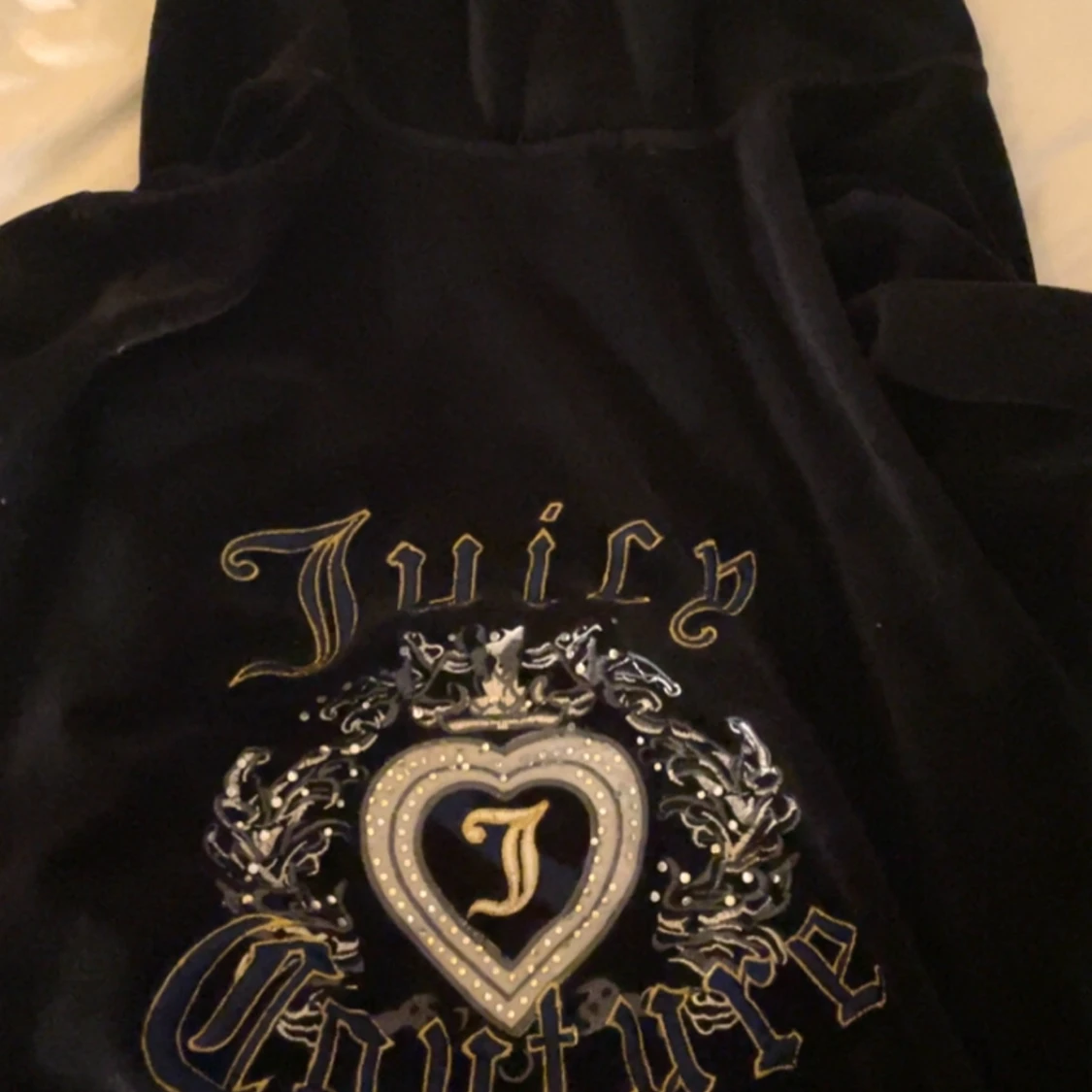 Snygg svart velourjacka från Juicy Couture med glittrig logga på ryggen. Dragkedjan saknas där av priset, annars i jätte bra skick.