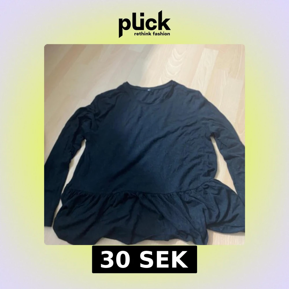 Säljer en svart långärmad tröja från ONLY med volangdetalj nedtill. Tröjan har rund halsringning och är i ett mjukt material som passar perfekt till vardags. Enkel och stilren design.