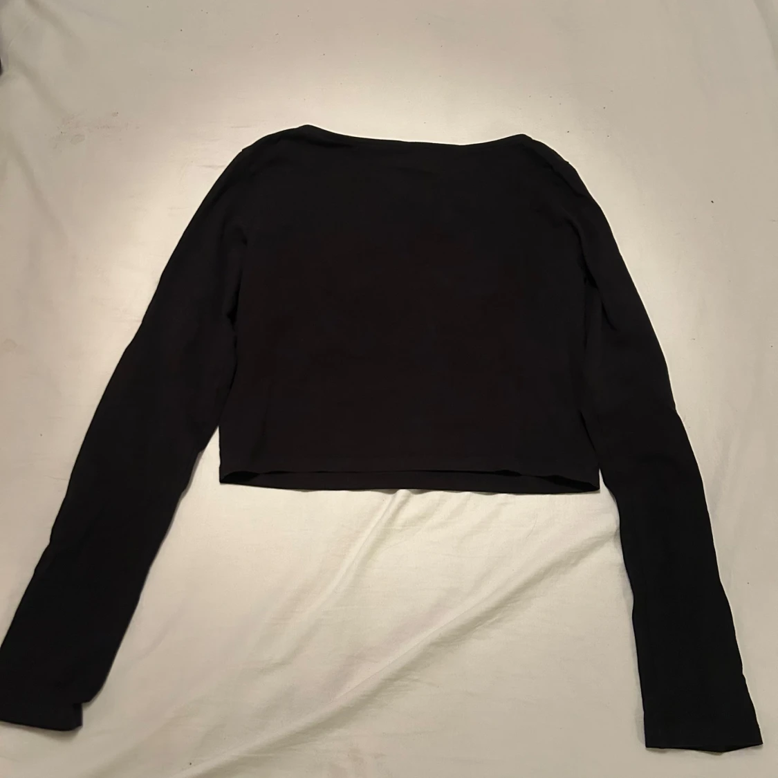 Svart croppad långärmad tröja från H&M. Den är verkligen inte i storlek L skulle säga S