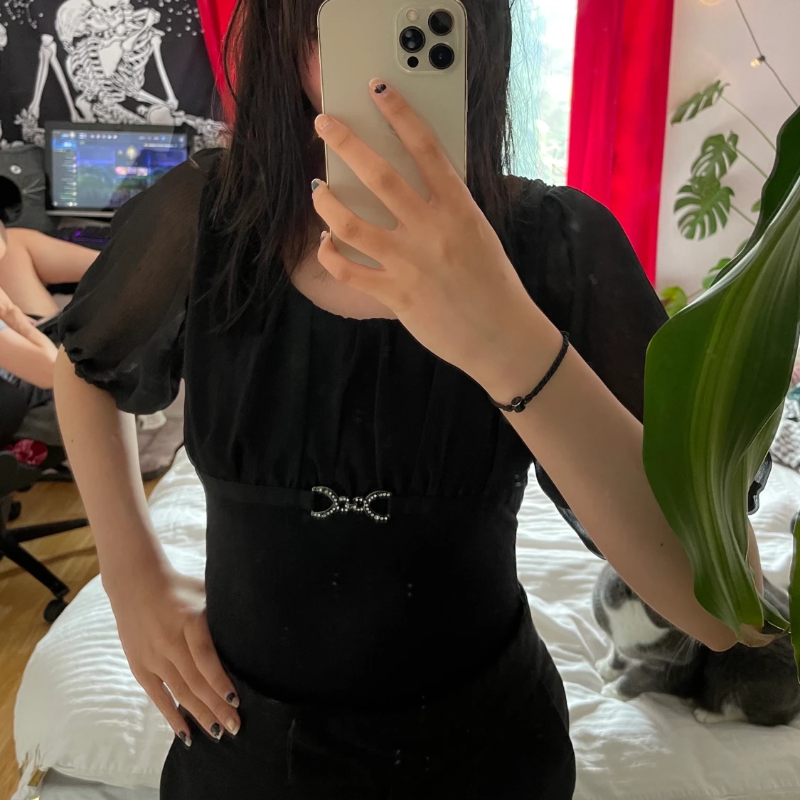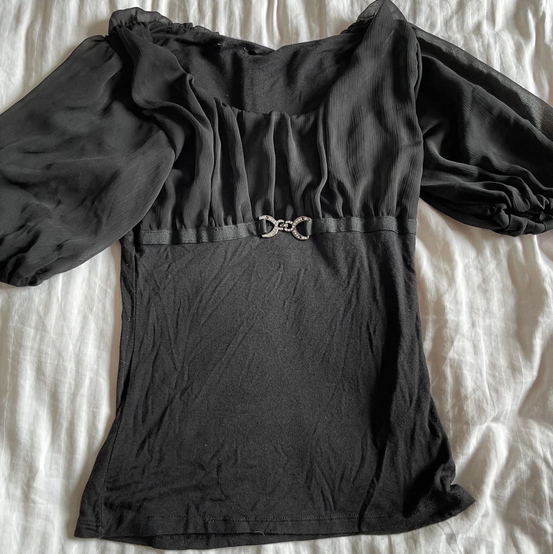 Svart Tröja med svart material som lyser igenom. Storleken är XS men materialet är väldigt stretchigt. Vet tyvärr inte märket då den är köpt second hand☺️